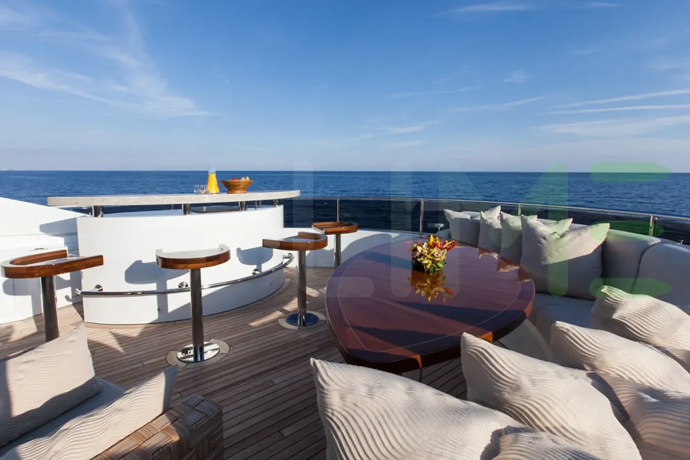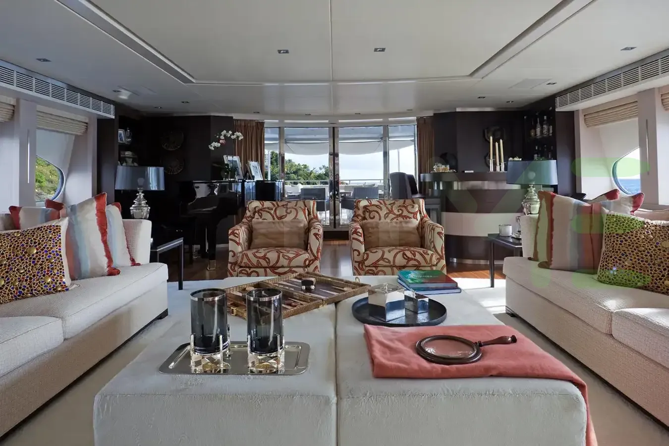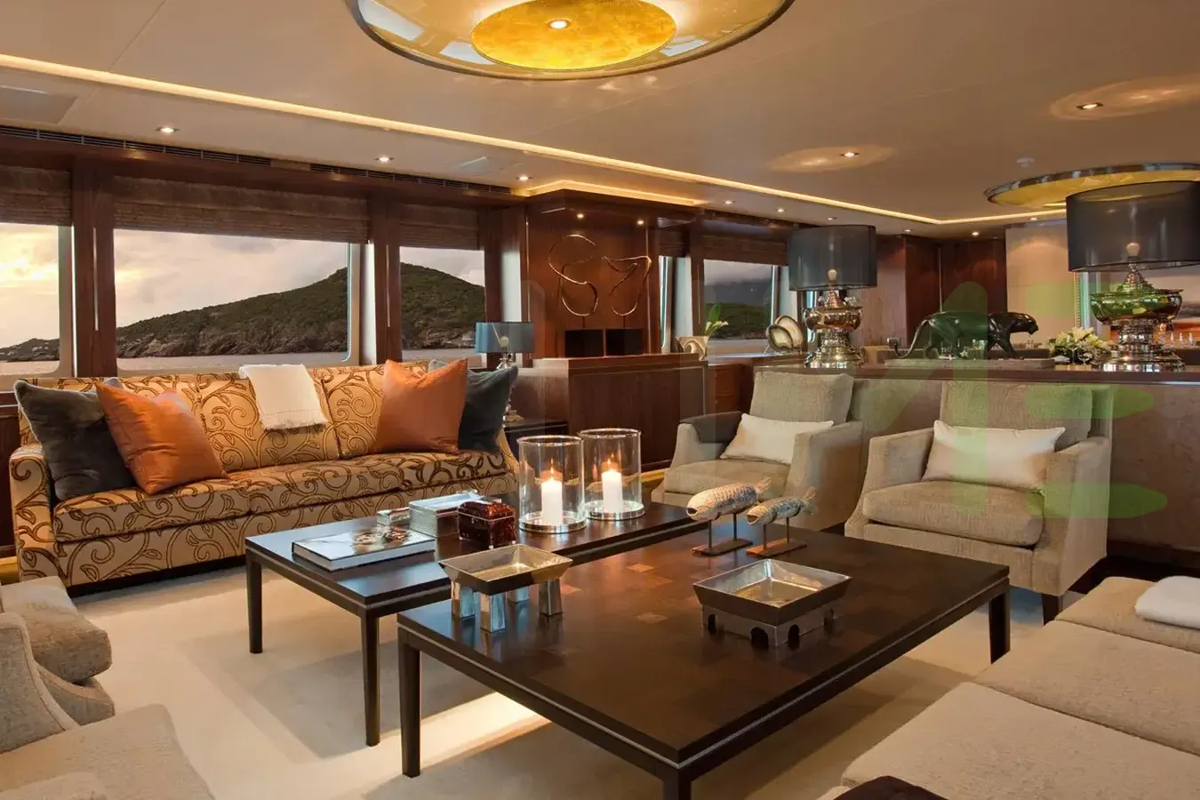 With a gross tonnage of 493, the 4YOU yacht for charter provides ample interior space for enjoyment. 4YOU offers accommodations for up to 12 guests in 5 lavishly appointed staterooms. She can also carry up to 9 crew onboard, including the Captain, to ensure a relaxed luxury yacht charter experience. The interior design by Omega Architects exudes a sense of luxury, seamlessly blending comfort with style.