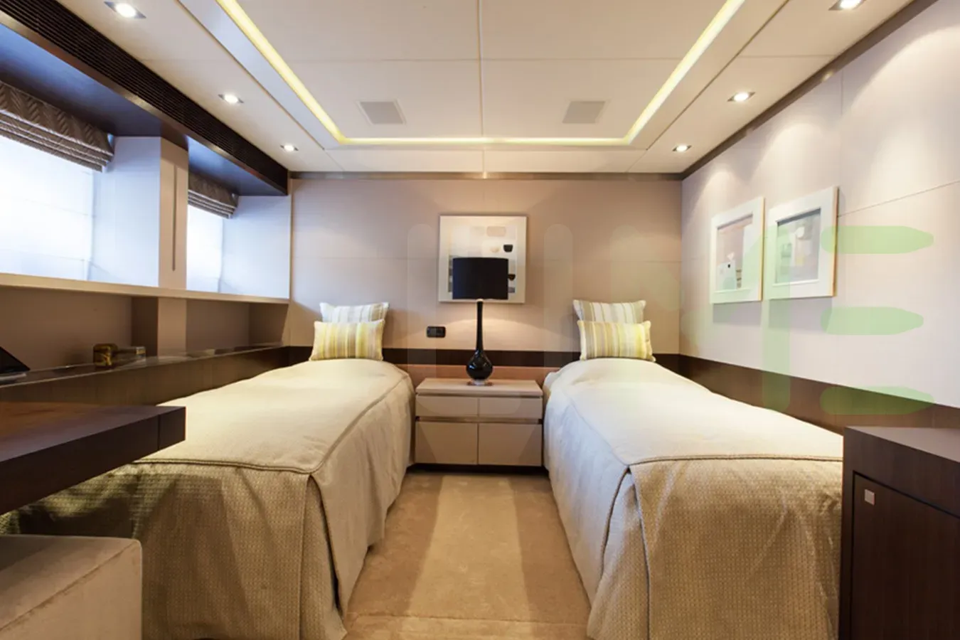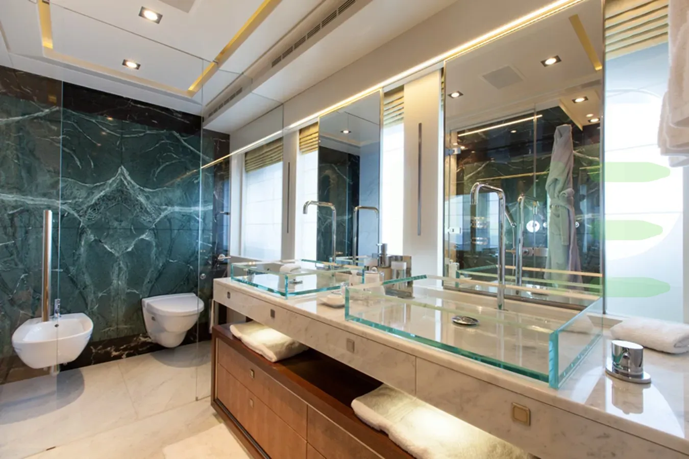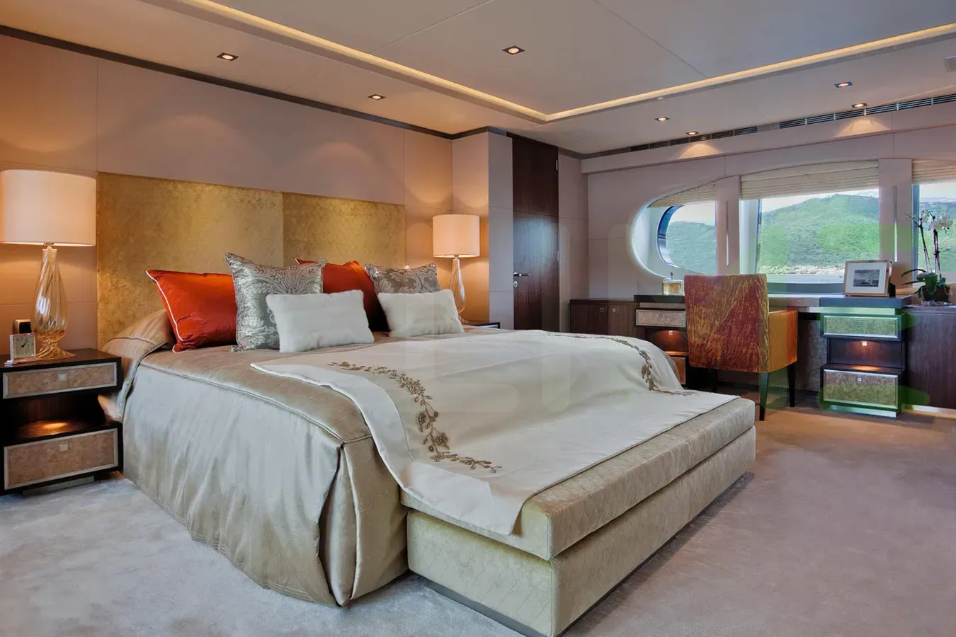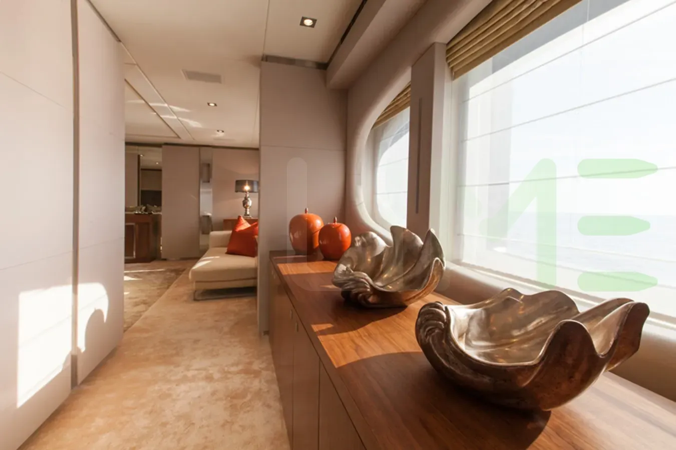 With a gross tonnage of 493, the 4YOU yacht for charter provides ample interior space for enjoyment. 4YOU offers accommodations for up to 12 guests in 5 lavishly appointed staterooms. She can also carry up to 9 crew onboard, including the Captain, to ensure a relaxed luxury yacht charter experience. The interior design by Omega Architects exudes a sense of luxury, seamlessly blending comfort with style.