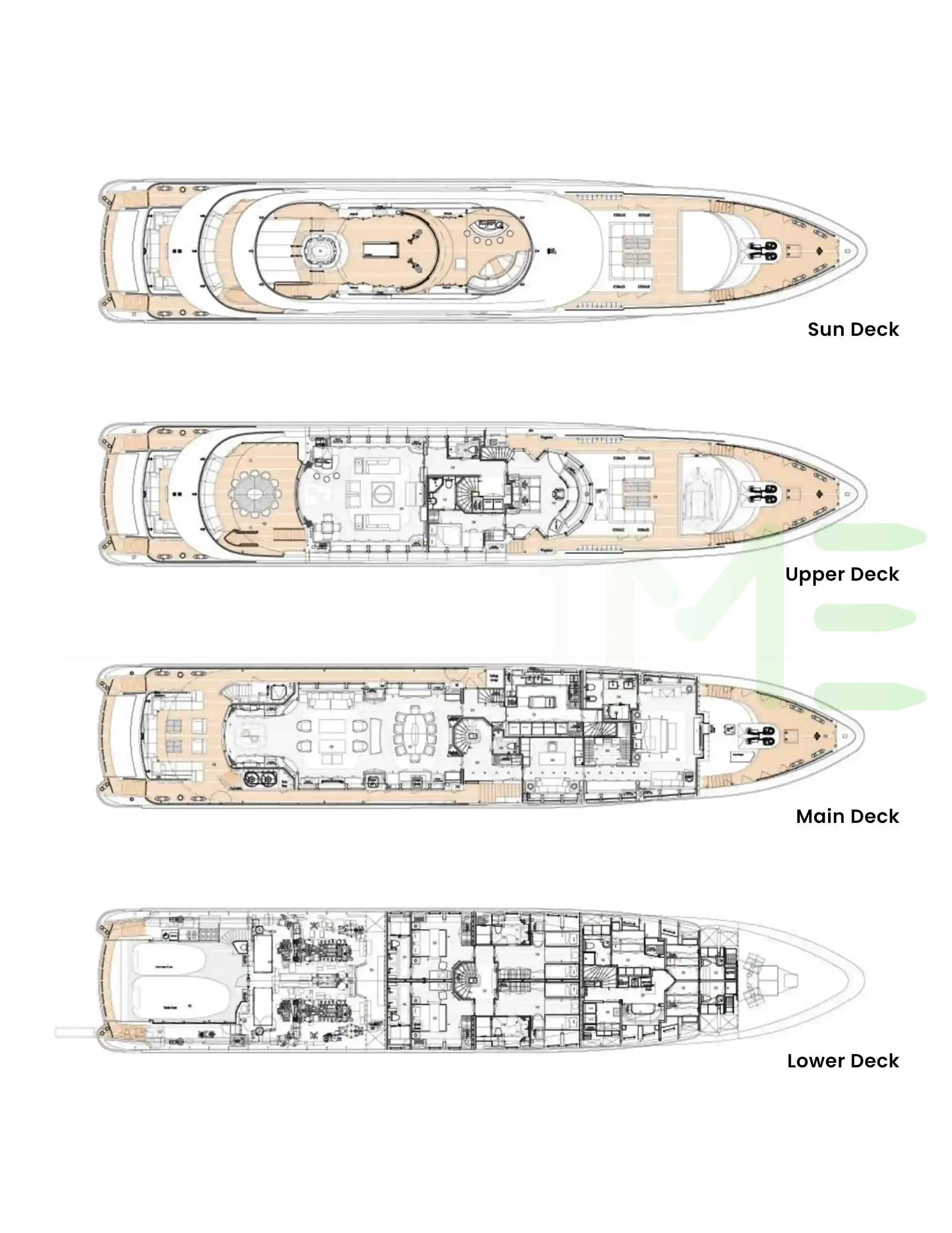 Request plans that include the layout of staterooms, guest areas, and outdoor spaces, as well as crew quarters and work areas.