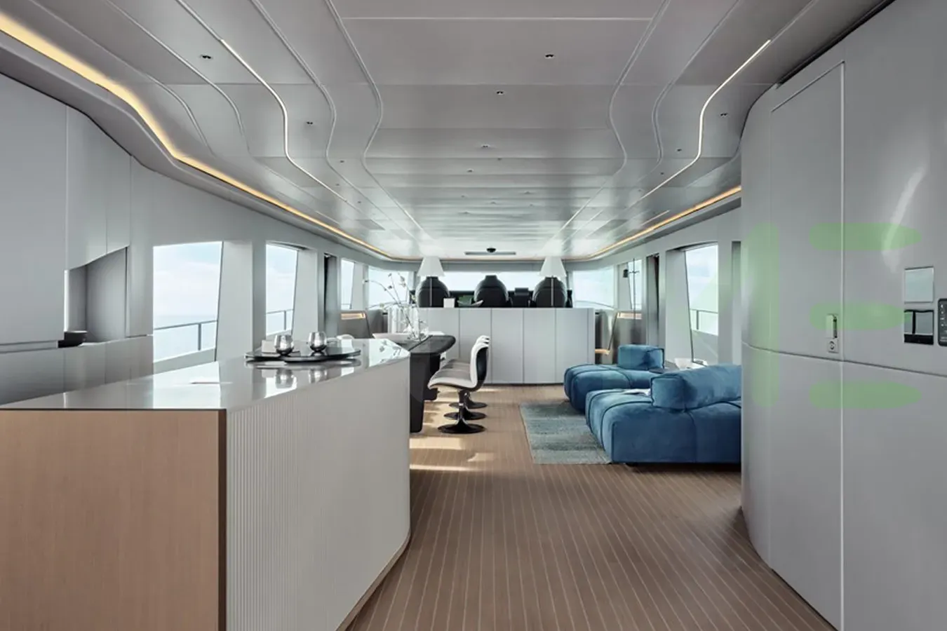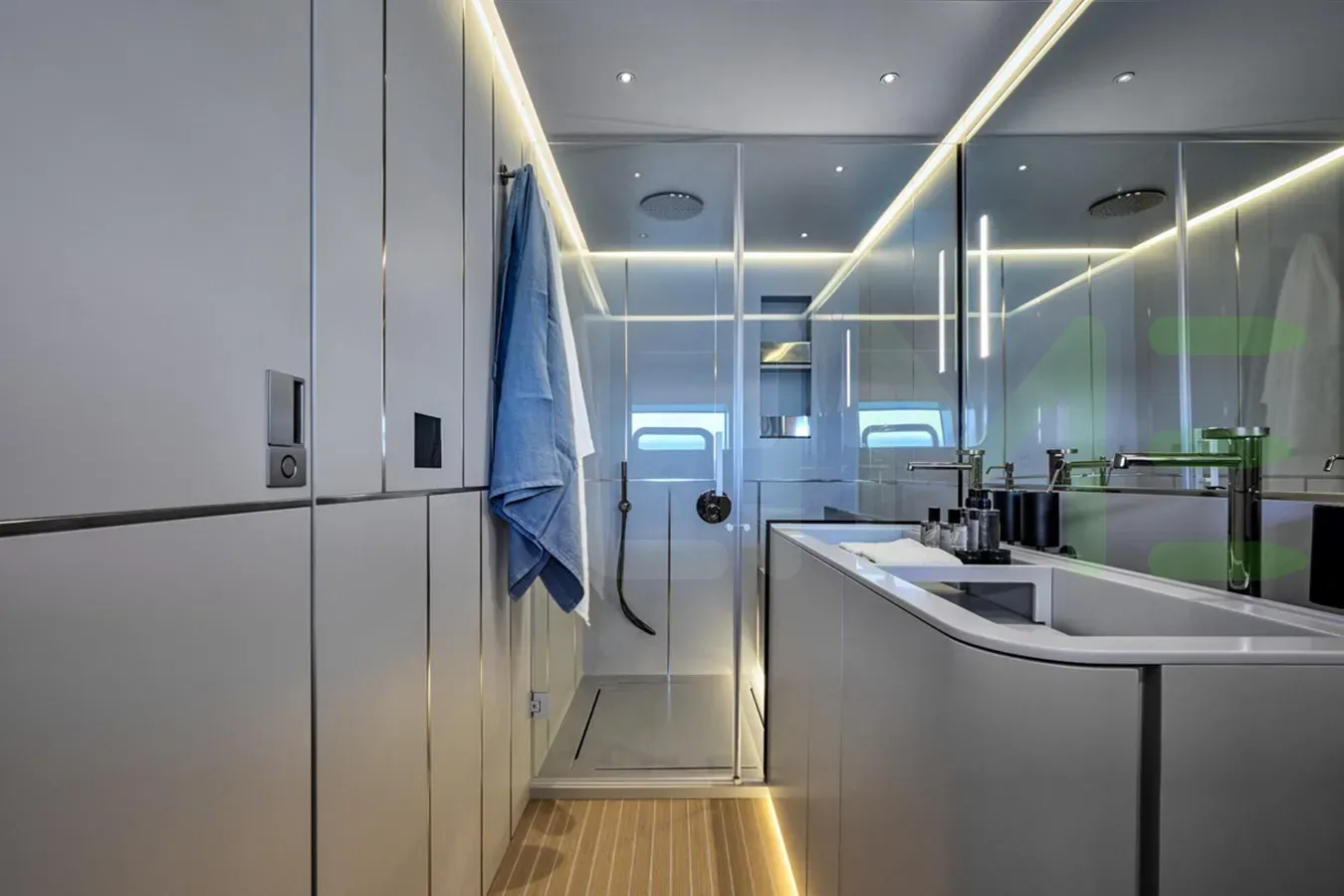 With a gross tonnage of 168, the 50 SHADES OF PLAY yacht for charter provides ample interior space for enjoyment. 50 SHADES OF PLAY offers accommodations for up to 10 guests . She can also carry up to 4 crew onboard, including the Captain, to ensure a relaxed luxury yacht charter experience. The interior design by Archea Associati exudes a sense of luxury, seamlessly blending comfort with style.