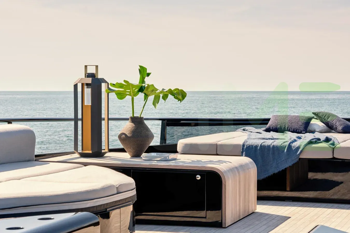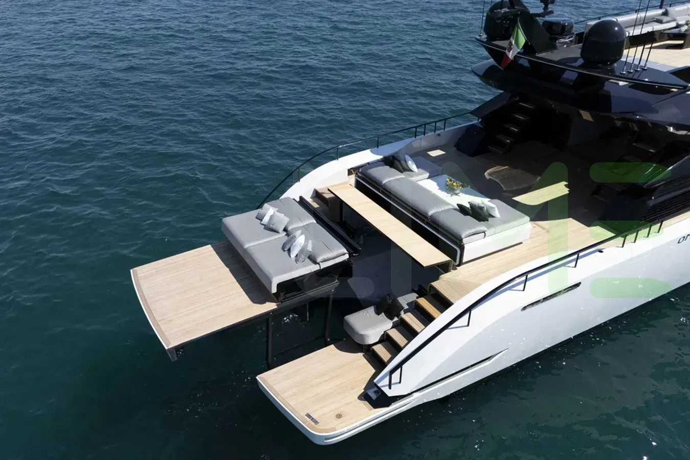 The exterior, designed by Archea Associati, captures your attention with beautiful lines and impeccable craftsmanship. Whether you're lounging on the spacious decks or enjoying water sports in a secluded anchorage, the 50 SHADES OF PLAY yacht for charter, built of GRP, offers a wealth of opportunities for relaxation and adventure.