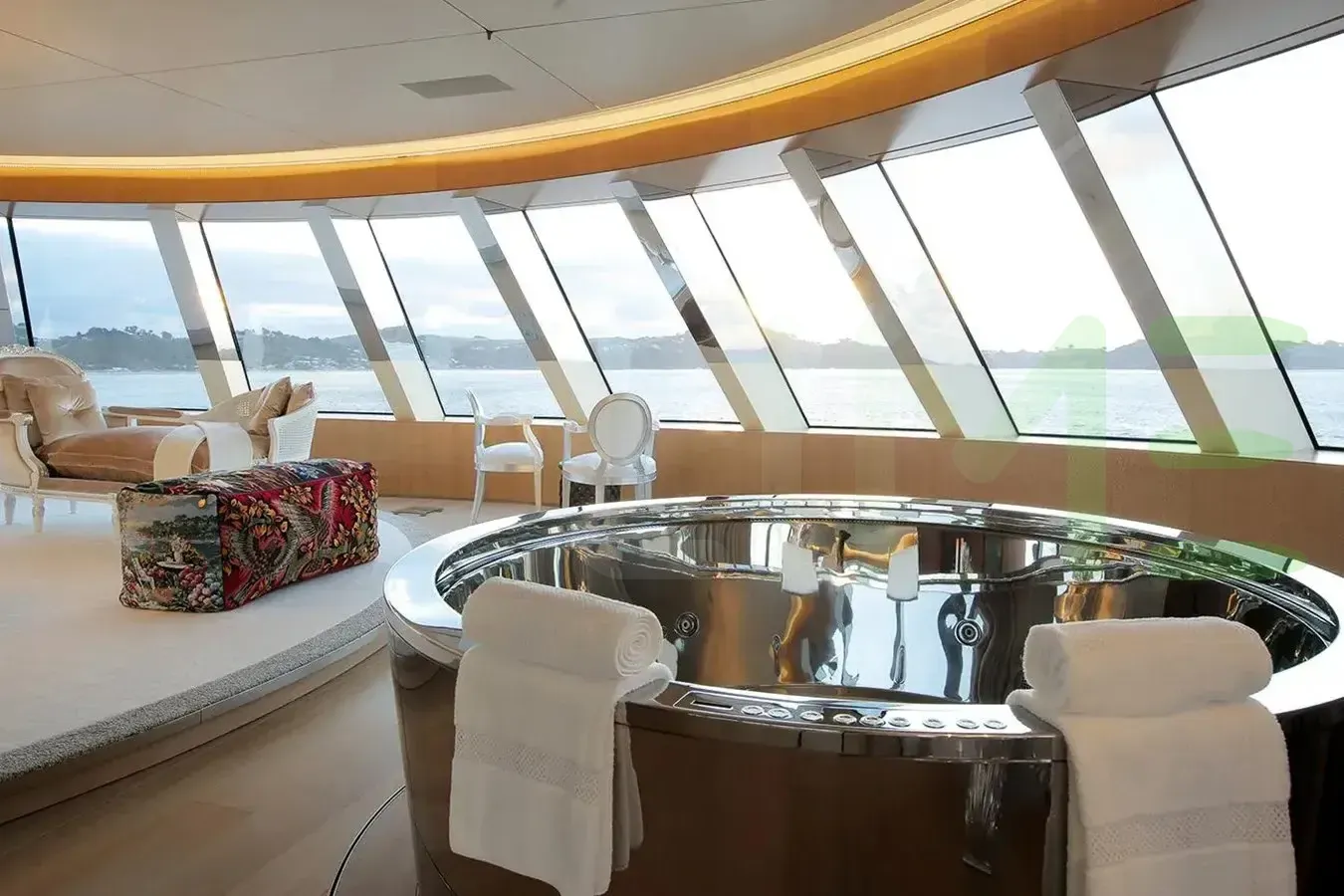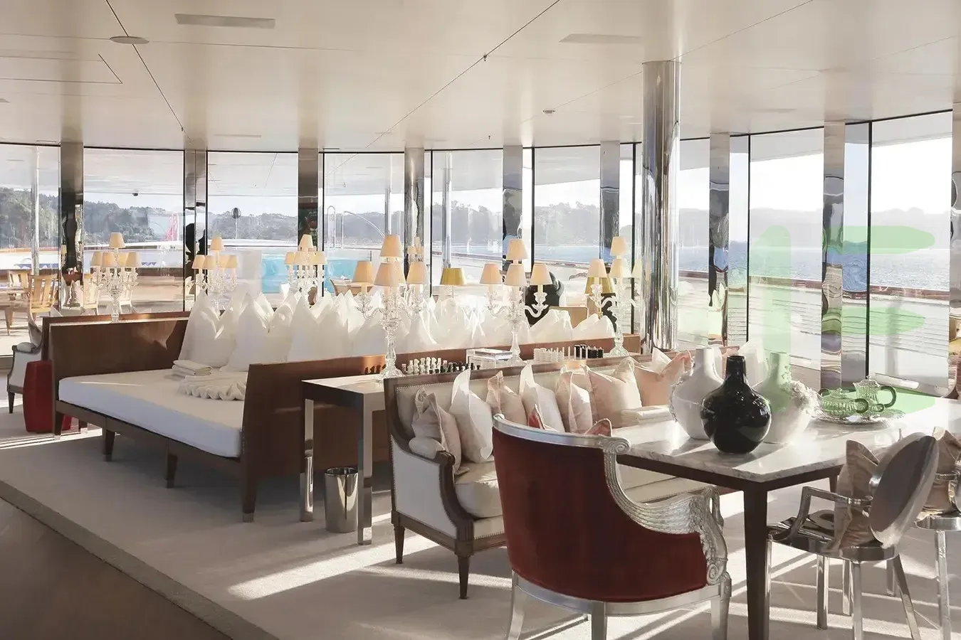 With a gross tonnage of 5,500, the A yacht for charter provides ample interior space for enjoyment. A offers accommodations for up to 14 guests in 7 lavishly appointed staterooms. She can also carry up to 35 crew onboard, including the Captain, to ensure a relaxed luxury yacht charter experience. The interior design by Philippe Starck exudes a sense of luxury, seamlessly blending comfort with style.