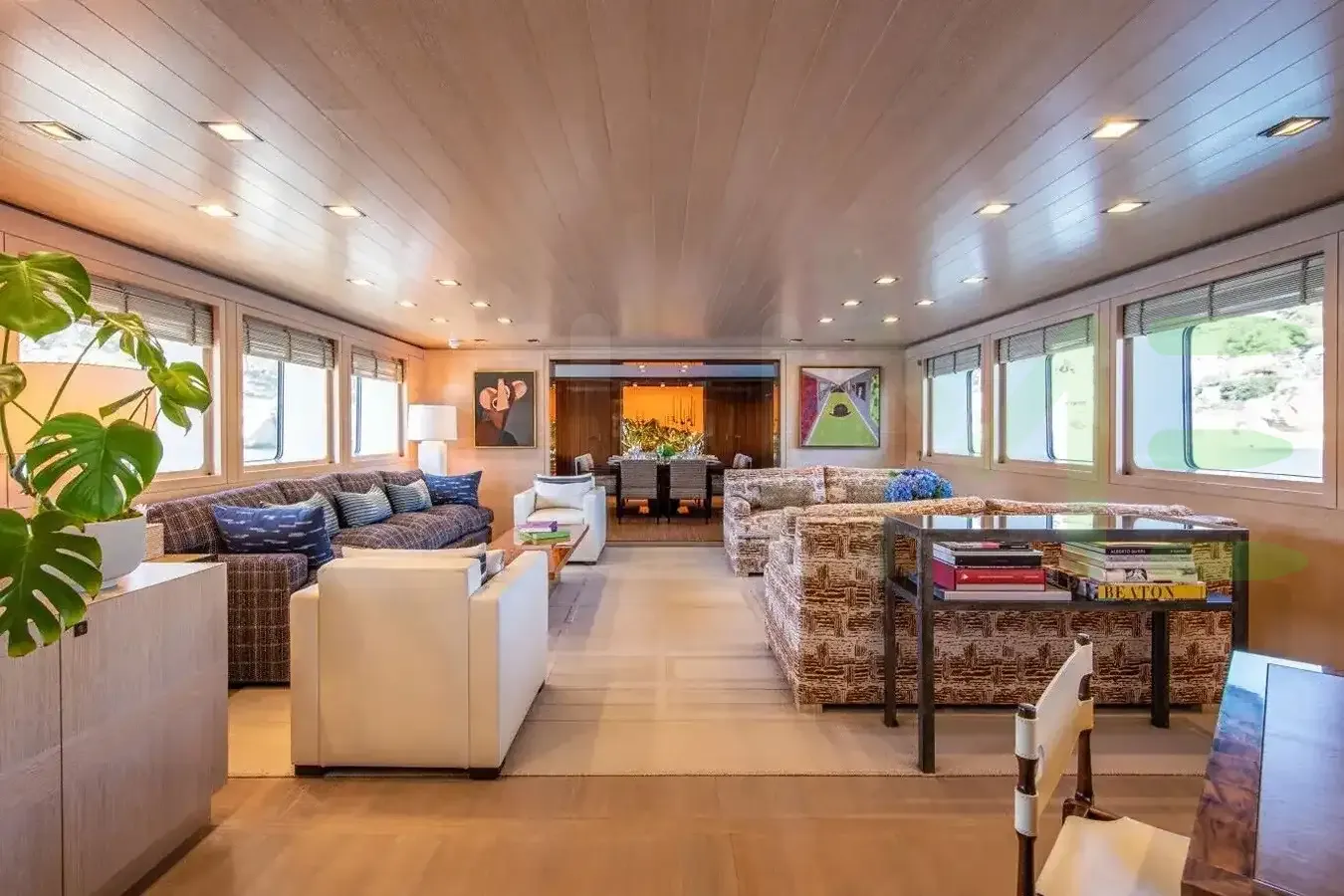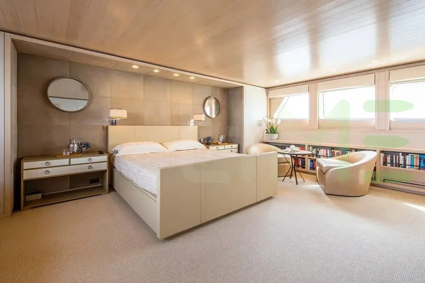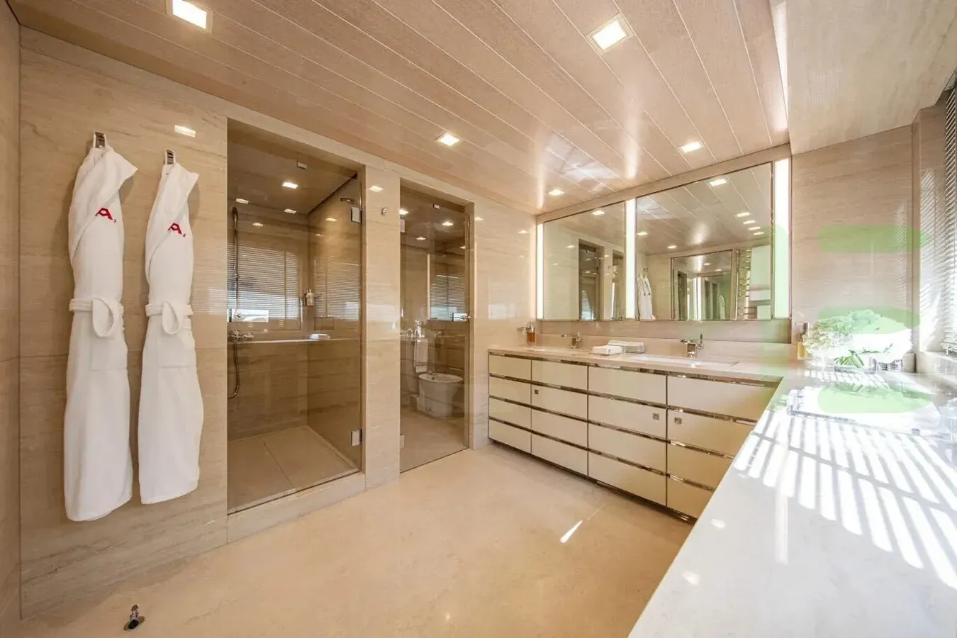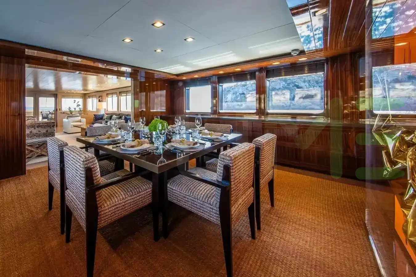 With a gross tonnage of 458, the A2 yacht for charter provides ample interior space for enjoyment. A2 offers accommodations for up to 12 guests in 5 lavishly appointed staterooms. She can also carry up to 9 crew onboard, including the Captain, to ensure a relaxed luxury yacht charter experience. The interior design by Puleo Inc. / International Yacht Design, Peter Marino exudes a sense of luxury, seamlessly blending comfort with style.