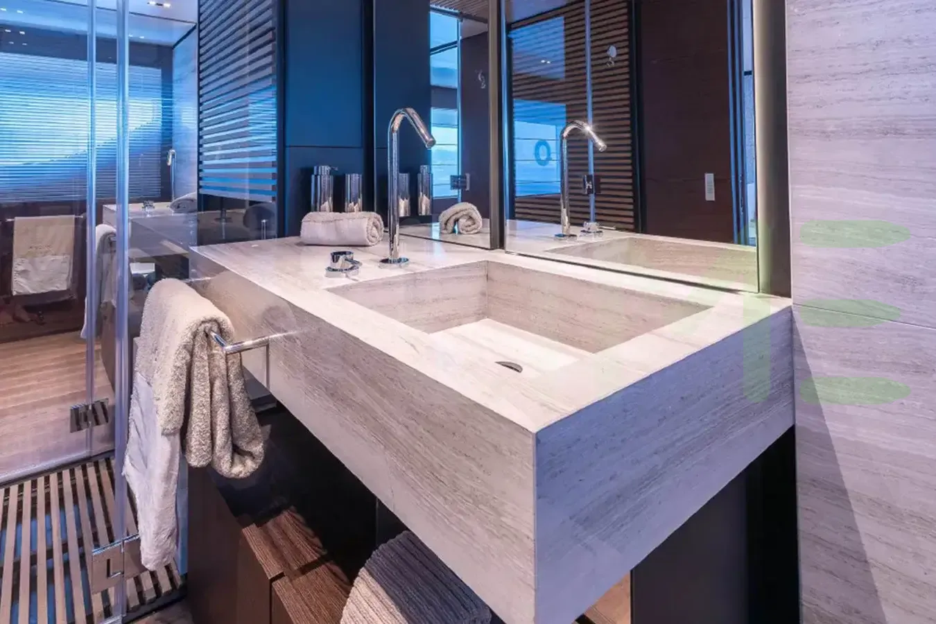 With a gross tonnage of 199, the ACQUA yacht for charter provides ample interior space for enjoyment. ACQUA offers accommodations for up to 11 guests in 5 lavishly appointed staterooms. She can also carry up to 6 crew onboard, including the Captain, to ensure a relaxed luxury yacht charter experience. The interior design by Zuccon International Project exudes a sense of luxury, seamlessly blending comfort with style.