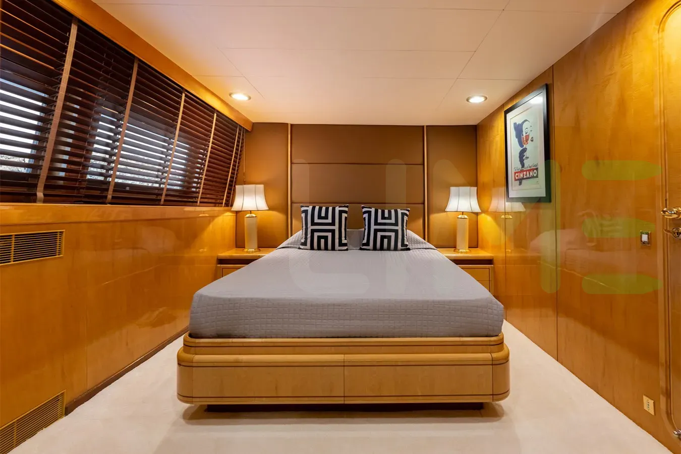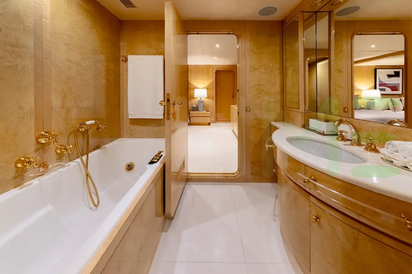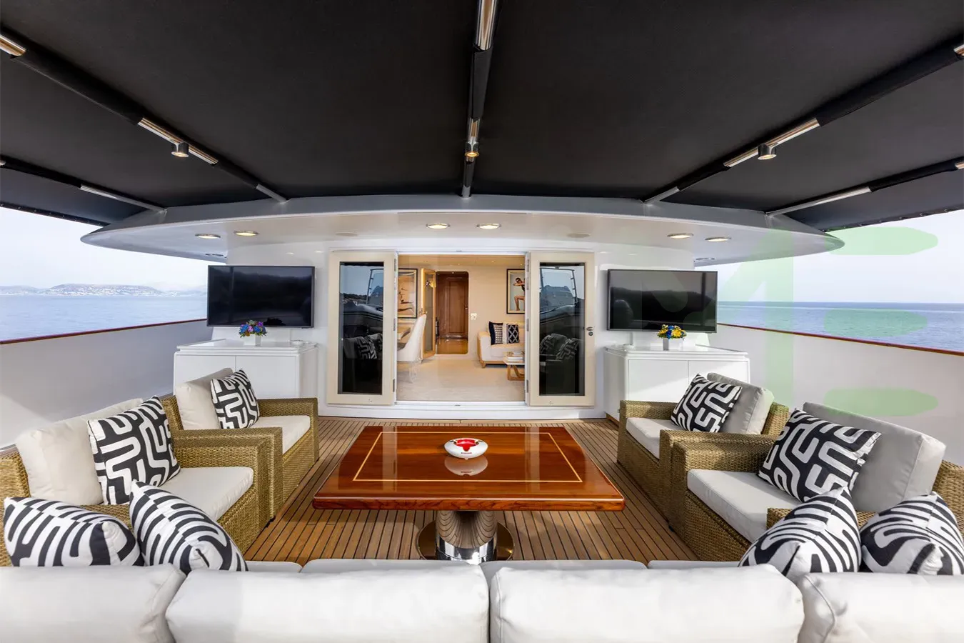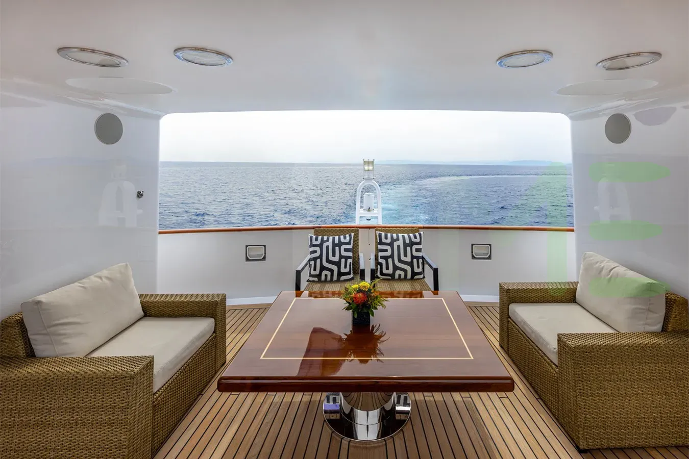 Her features include underwater lights, deck jacuzzi, WiFi and air conditioning.