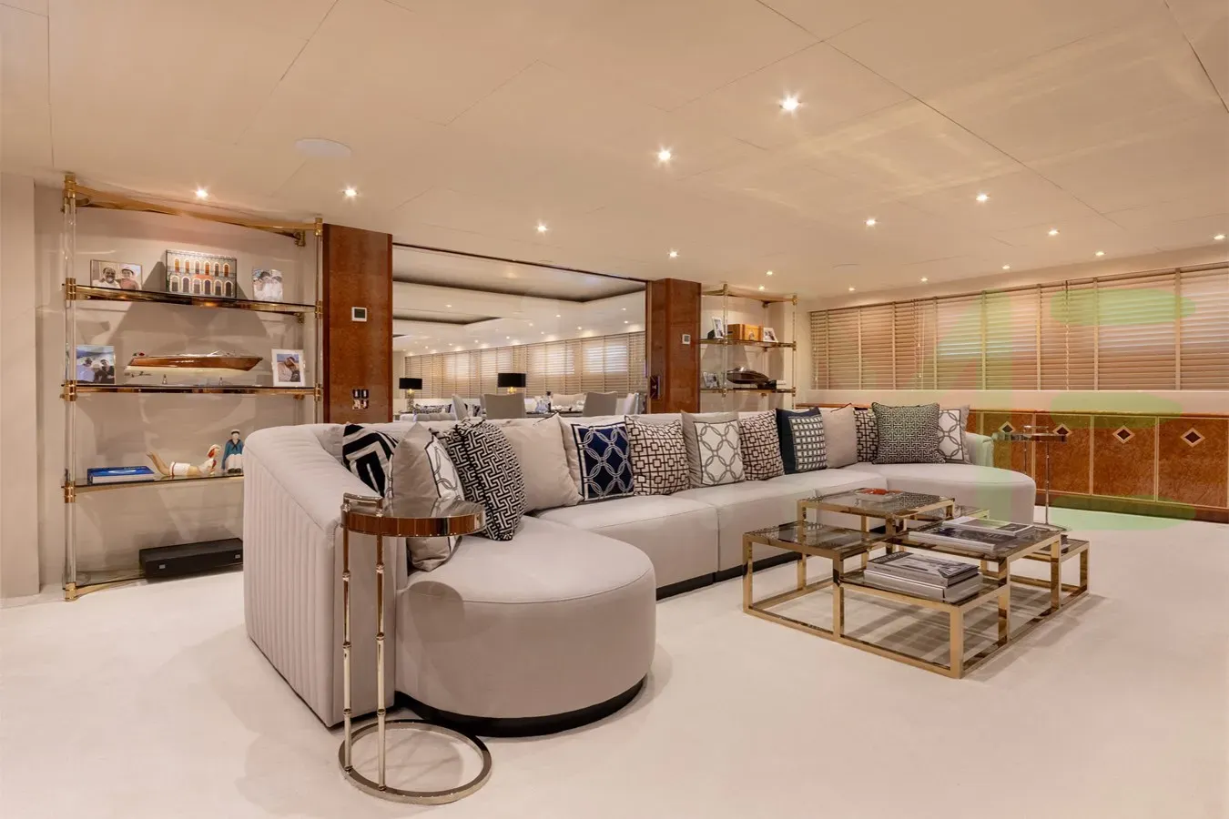 With a gross tonnage of 986, the ADAMAS V yacht for charter provides ample interior space for enjoyment. ADAMAS V offers accommodations for up to 12 guests in 6 lavishly appointed staterooms. She can also carry up to 20 crew onboard, including the Captain, to ensure a relaxed luxury yacht charter experience. The interior design by Claudio Zampetti exudes a sense of luxury, seamlessly blending comfort with style.