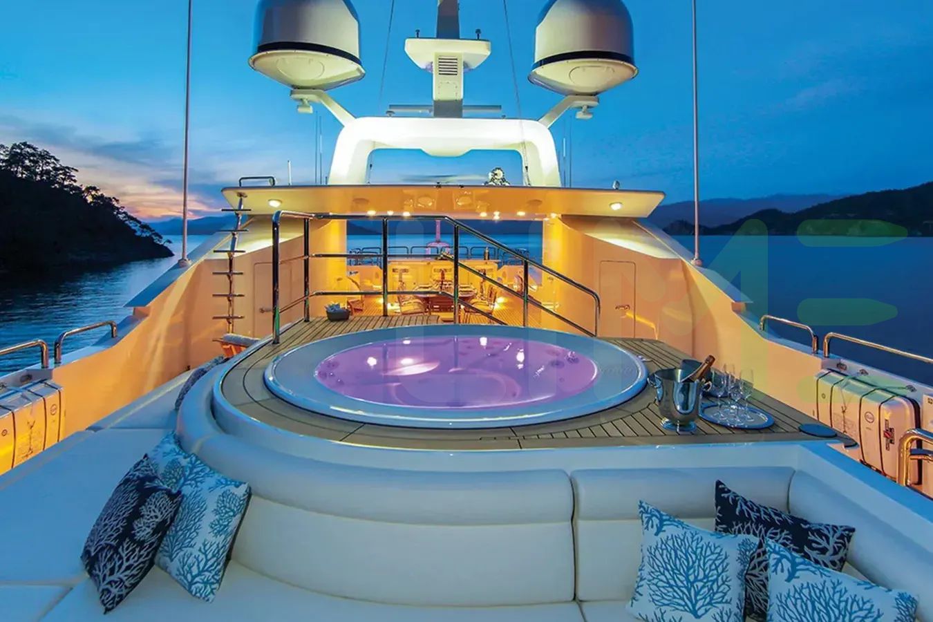 A charter on Africa I is comfortable and convenient thanks to the provided amenities, notably a gym with all the latest equipment to maintain your fitness routine. Sit back with a glass of champagne in the deck jacuzzi.