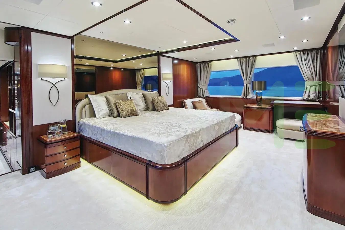 With a gross tonnage of 492, the AFRICA I yacht for charter provides ample interior space for enjoyment. AFRICA I offers accommodations for up to 12 guests in 6 lavishly appointed staterooms. She can also carry up to 12 crew onboard, including the Captain, to ensure a relaxed luxury yacht charter experience. The interior design by Zuretti Interior Design exudes a sense of luxury, seamlessly blending comfort with style.