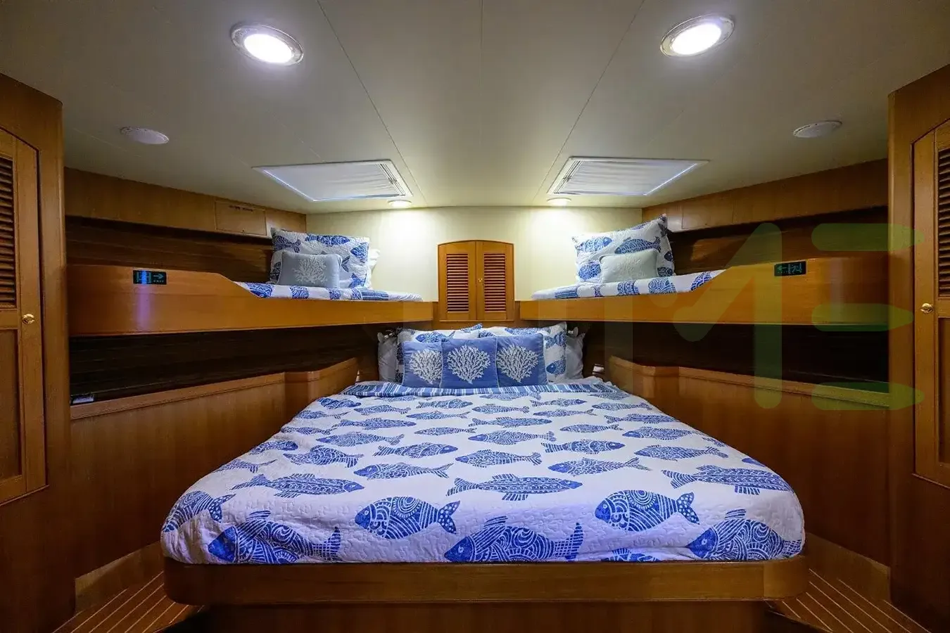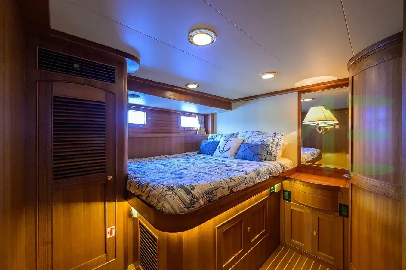 The exterior, designed by Marlow Yachts, captures your attention with beautiful lines and impeccable craftsmanship. Whether you're lounging on the spacious decks or enjoying water sports in a secluded anchorage, the AGAVE yacht for charter, built of GRP, offers a wealth of opportunities for relaxation and adventure.