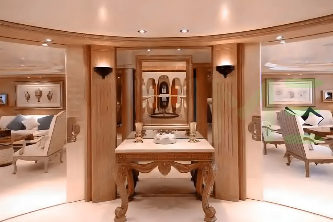 With a gross tonnage of 12,234, the AL SALAMAH yacht for charter provides ample interior space for enjoyment. AL SALAMAH offers accommodations for up to 40 guests in 20 lavishly appointed staterooms. She can also carry up to 96 crew onboard, including the Captain, to ensure a relaxed luxury yacht charter experience. The interior design by Terence Disdale Design exudes a sense of luxury, seamlessly blending comfort with style.