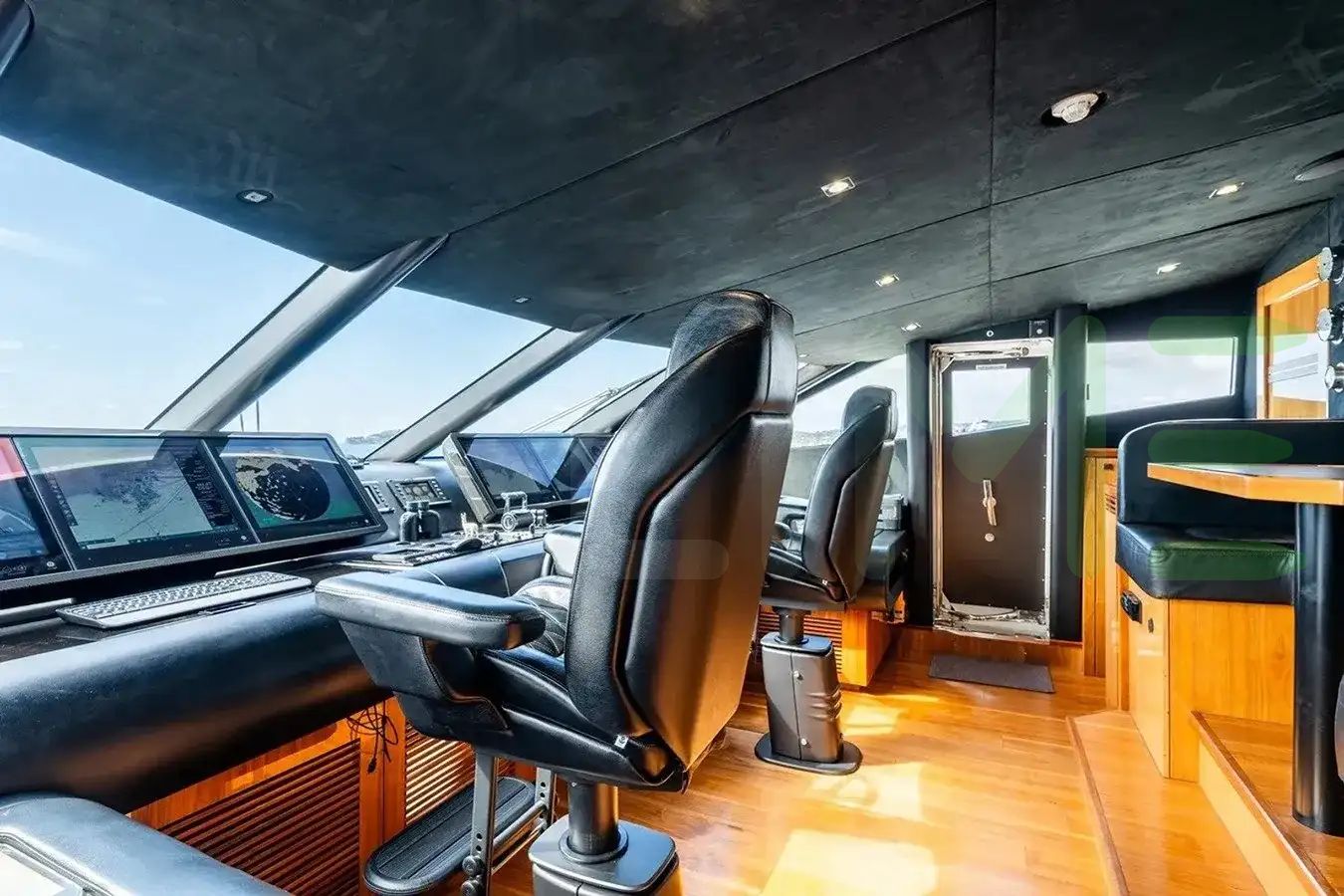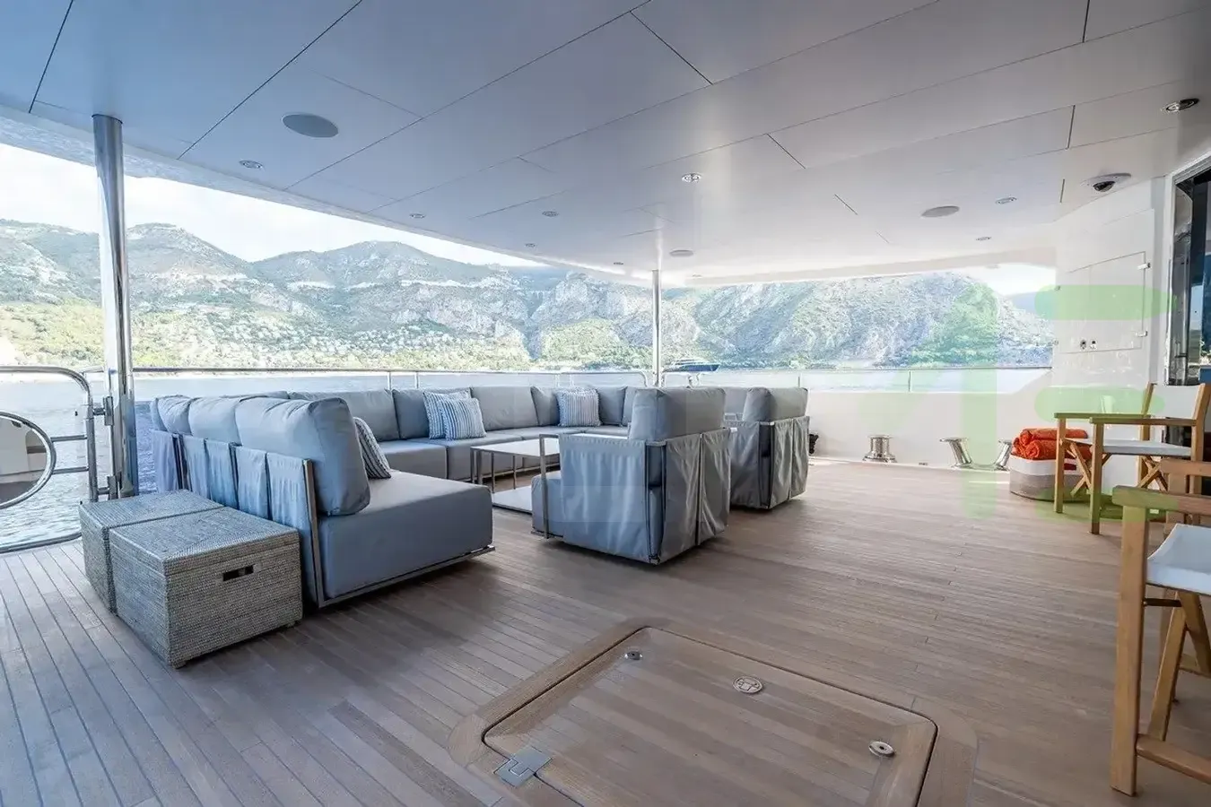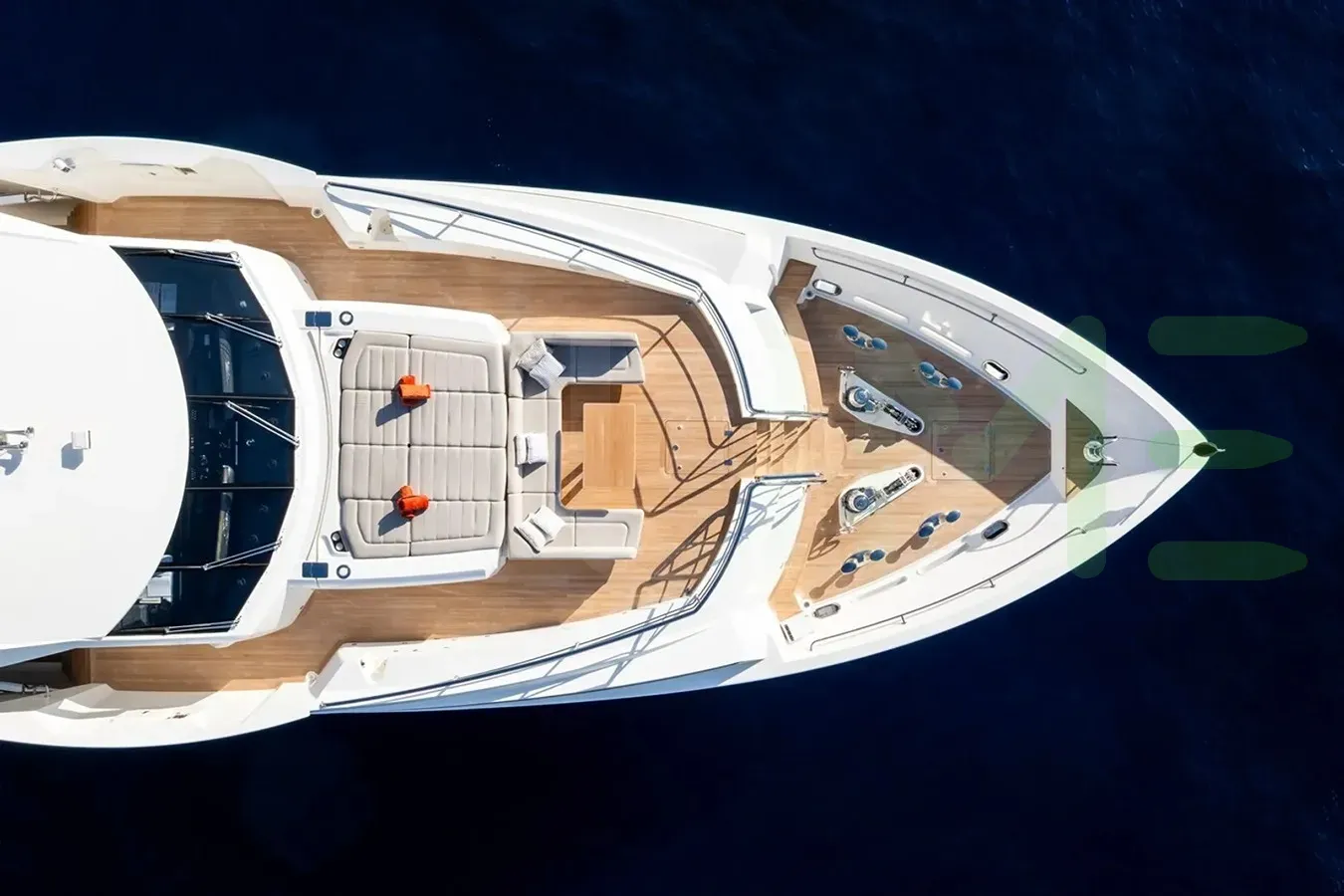 The exterior, designed by Sunseeker, captures your attention with beautiful lines and impeccable craftsmanship. Whether you're lounging on the spacious decks or enjoying water sports in a secluded anchorage, the ALADDIN yacht for charter, built of GRP, offers a wealth of opportunities for relaxation and adventure.