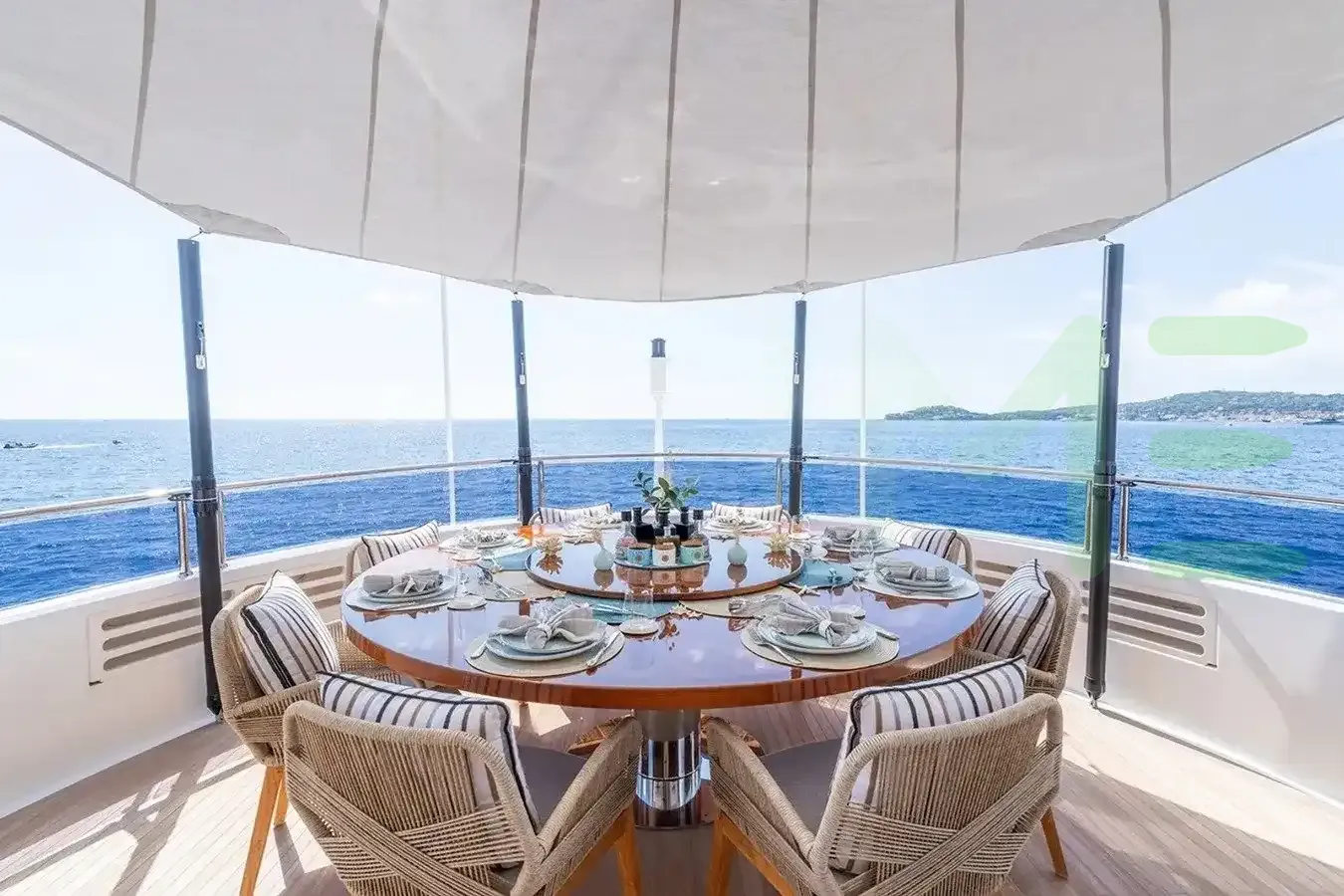 Manned by a dedicated crew of 8 professionals, your every need will be catered to with the utmost attention to detail. The ALADDIN Yacht for charter is the epitome of refined luxury, making it the ideal choice for those seeking an unforgettable charter experience. Embark on a journey of a lifetime aboard motoryacht ALADDIN, where every moment is crafted to perfection.