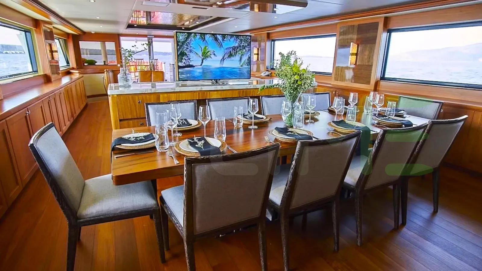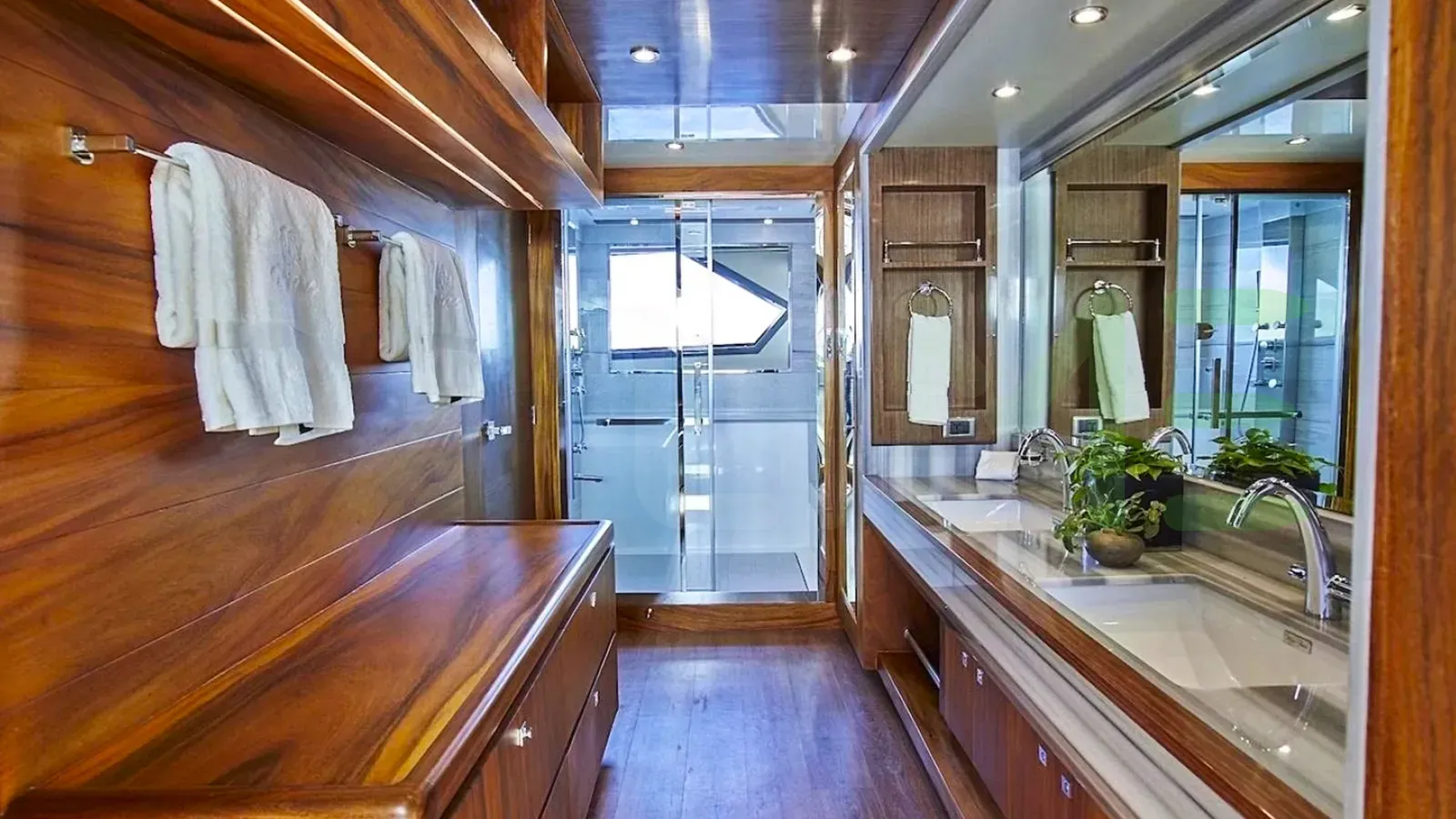 With a gross tonnage of 320, the ALAIA yacht for charter provides ample interior space for enjoyment. ALAIA offers accommodations for up to 13 guests in 5 lavishly appointed staterooms. She can also carry up to 11 crew onboard, including the Captain, to ensure a relaxed luxury yacht charter experience. The interior design by Glade Johnson Design, Inc. exudes a sense of luxury, seamlessly blending comfort with style.