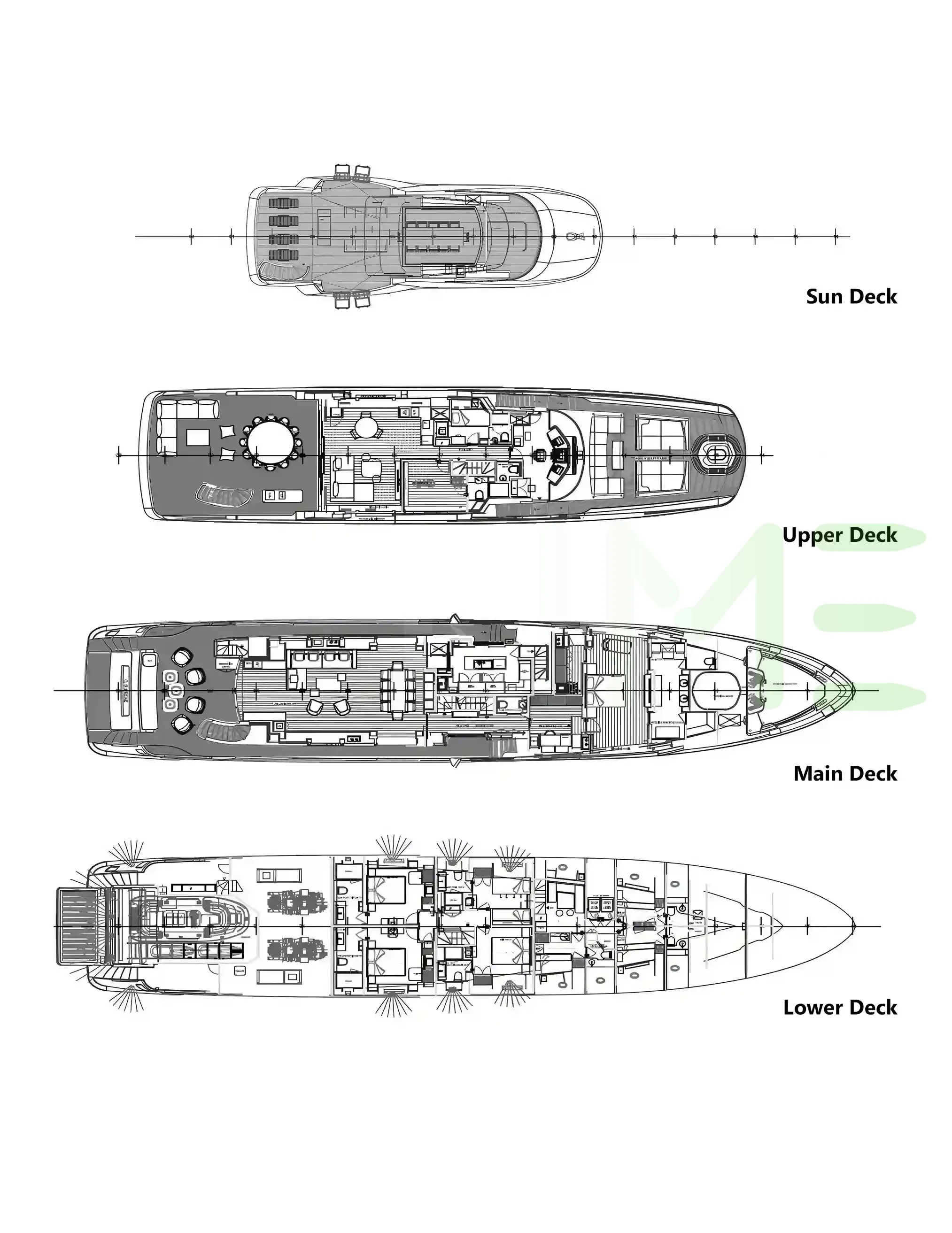 Request plans that include the layout of staterooms, guest areas, and outdoor spaces, as well as crew quarters and work areas.