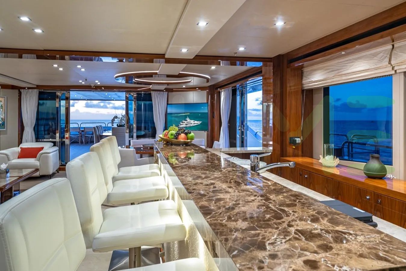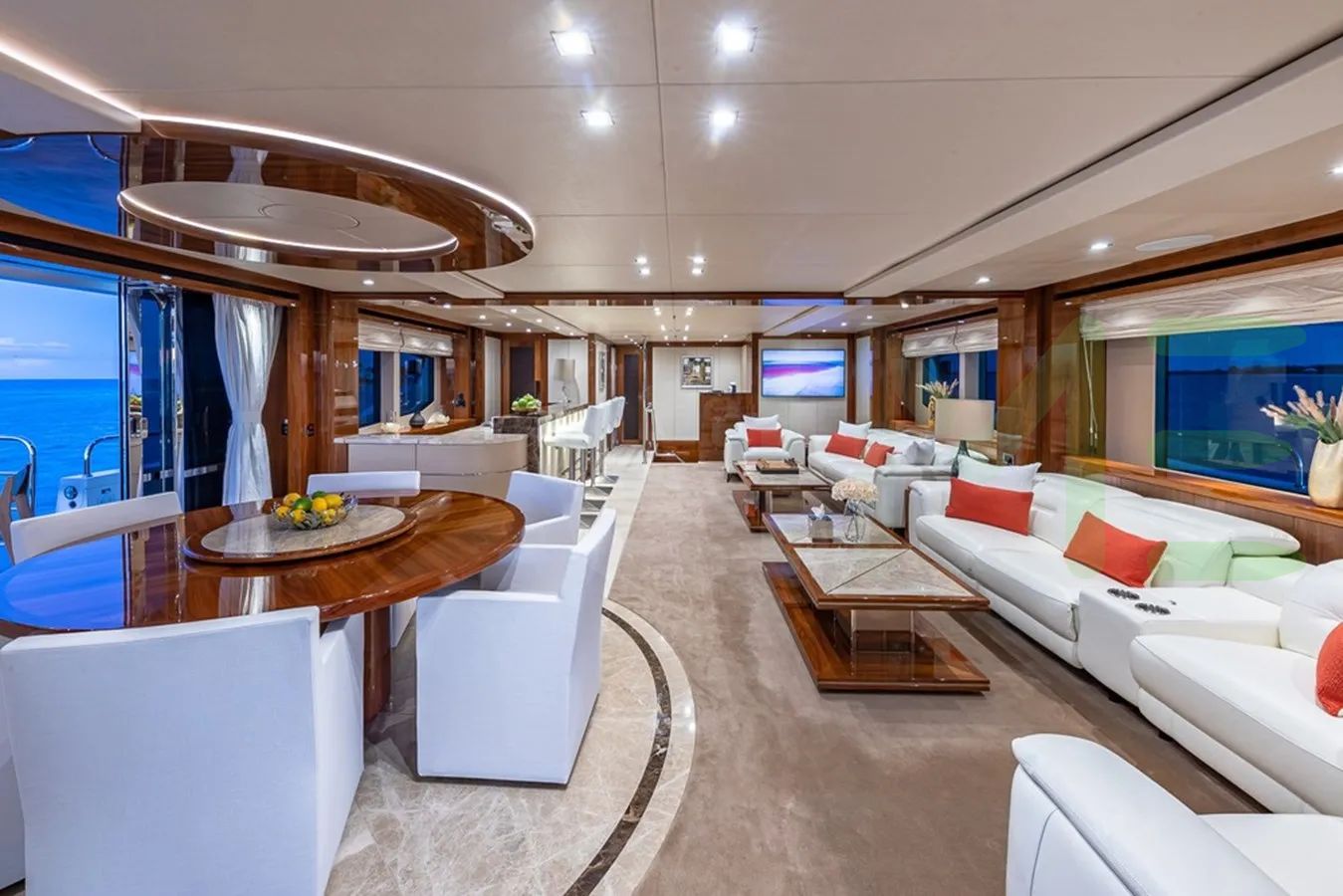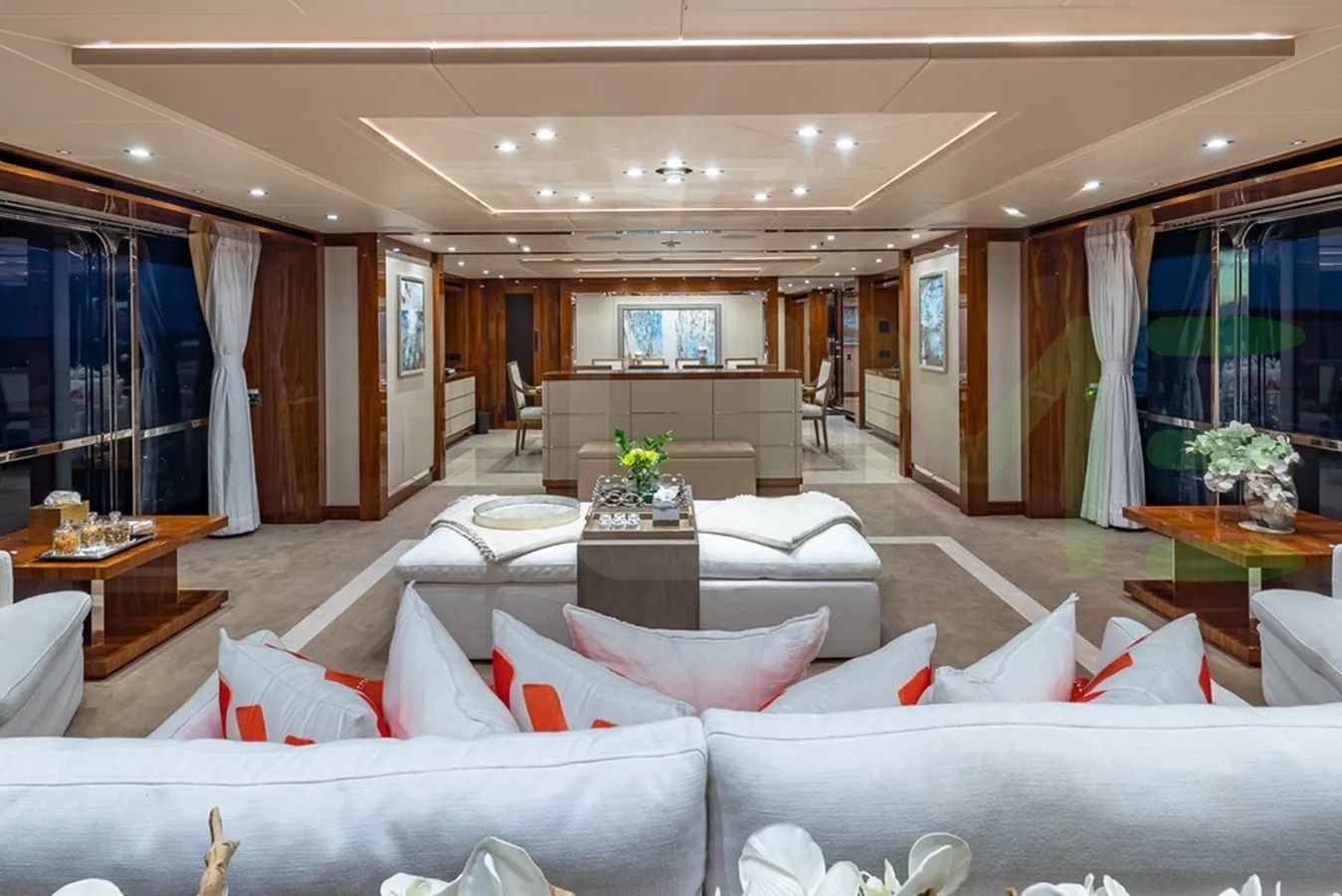 With a gross tonnage of 495, the ALESSANDRA III yacht for charter provides ample interior space for enjoyment. ALESSANDRA III offers accommodations for up to 12 guests in 6 lavishly appointed staterooms. She can also carry up to 11 crew onboard, including the Captain, to ensure a relaxed luxury yacht charter experience. The interior design by Sunseeker exudes a sense of luxury, seamlessly blending comfort with style.