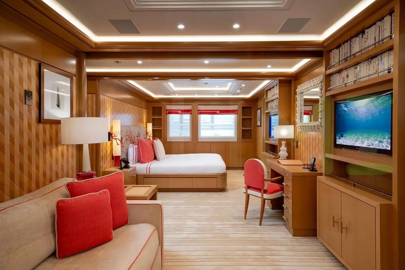 Her features include a dancefloor, beauty salon, spa, beauty salon, elevator, beach club, gym, deck jacuzzi, WiFi and air conditioning.