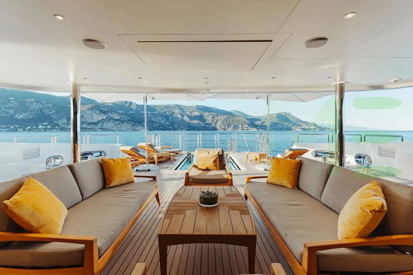 A charter on Alfa is comfortable and convenient thanks to the provided amenities, notably a sauna to help you detox and regenerate. The swimming pool is perfect for exercising or admiring a romantic sunrise. Even the most discerning of charter guests will enjoy the included beach club and in addition maintain your fitness routine and work out in the well-equipped gym. Sit back with a glass of champagne in the deck jacuzzi.