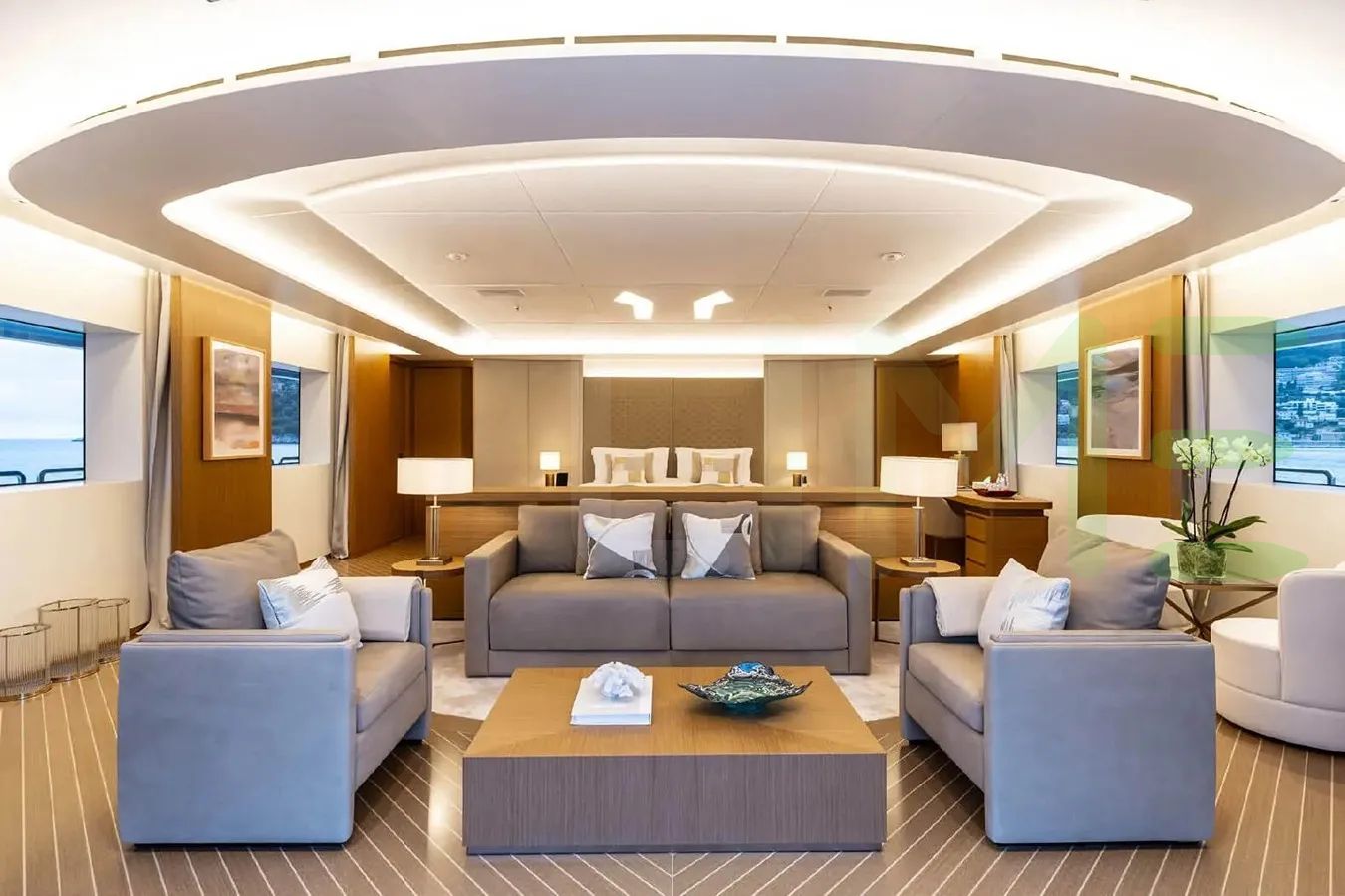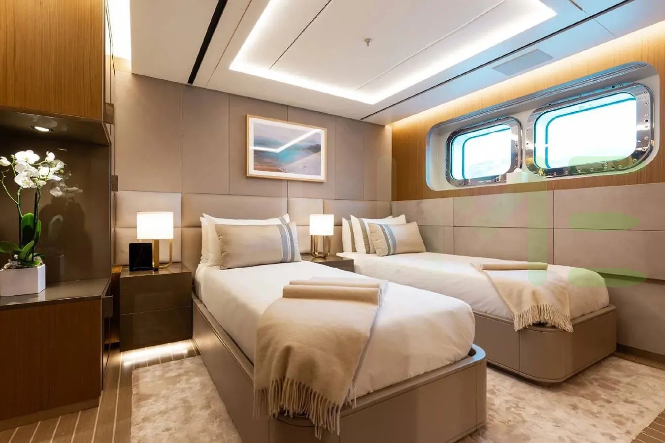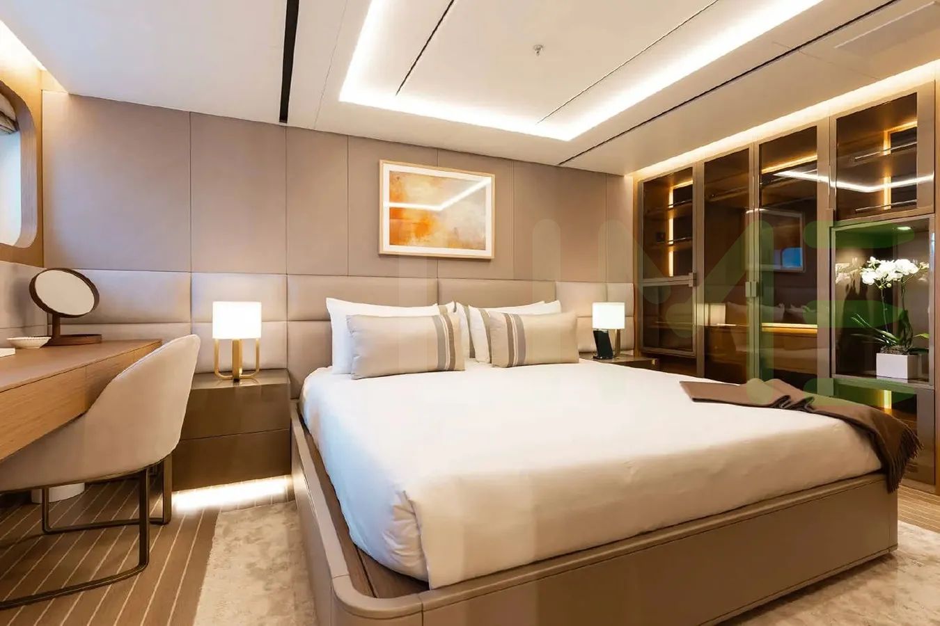 • Full-beam master cabin with dressing room and study