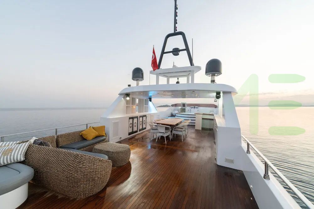 The exterior, designed by Naval Architect Ercument Kafali, captures your attention with beautiful lines and impeccable craftsmanship. Whether you're lounging on the spacious decks or enjoying water sports in a secluded anchorage, the ALKONOST yacht for charter, built of Wood and Aluminium, offers a wealth of opportunities for relaxation and adventure.