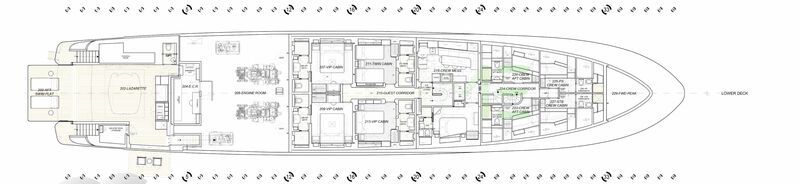 Request plans that include the layout of staterooms, guest areas, and outdoor spaces, as well as crew quarters and work areas.