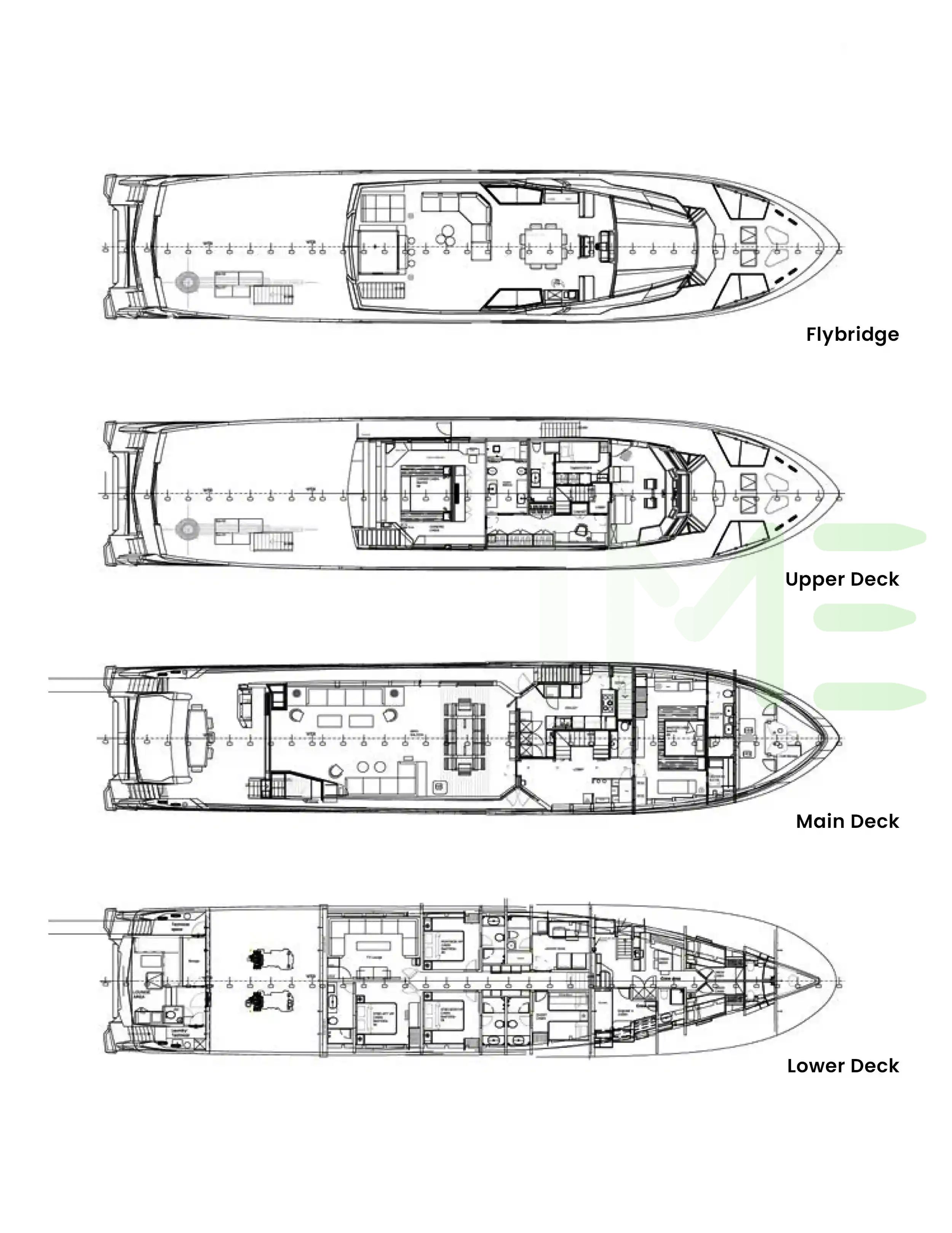 Request plans that include the layout of staterooms, guest areas, and outdoor spaces, as well as crew quarters and work areas.