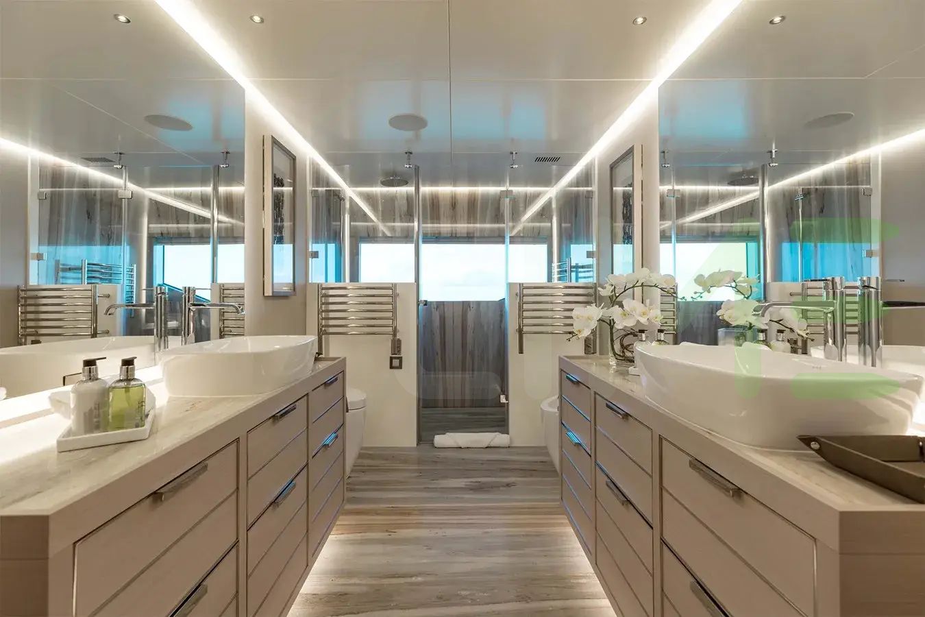 With a gross tonnage of 345, the AMORE yacht for charter provides ample interior space for enjoyment. AMORE offers accommodations for up to 12 guests in 6 lavishly appointed staterooms. She can also carry up to 7 crew onboard, including the Captain, to ensure a relaxed luxury yacht charter experience. The interior design by Can Yalman exudes a sense of luxury, seamlessly blending comfort with style.
