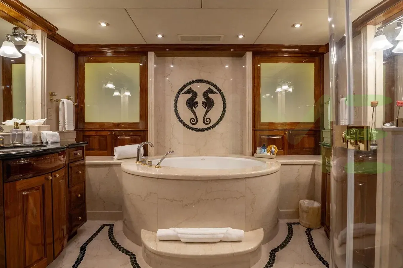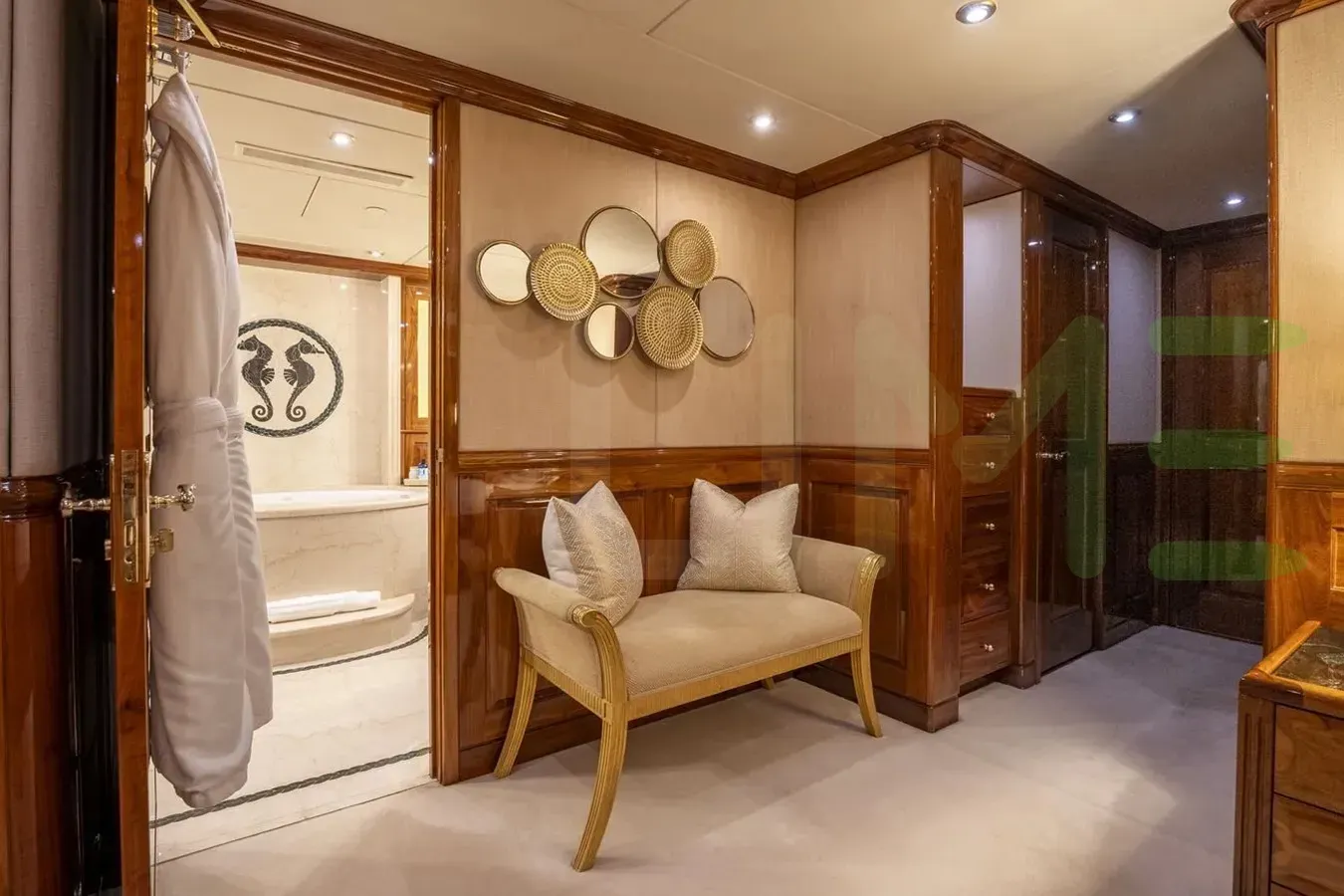 With a gross tonnage of 499, the AMORE yacht for charter provides ample interior space for enjoyment. AMORE offers accommodations for up to 16 guests in 6 lavishly appointed staterooms. She can also carry up to 9 crew onboard, including the Captain, to ensure a relaxed luxury yacht charter experience. The interior design by Carol Williamson & Associates Ltd. exudes a sense of luxury, seamlessly blending comfort with style.