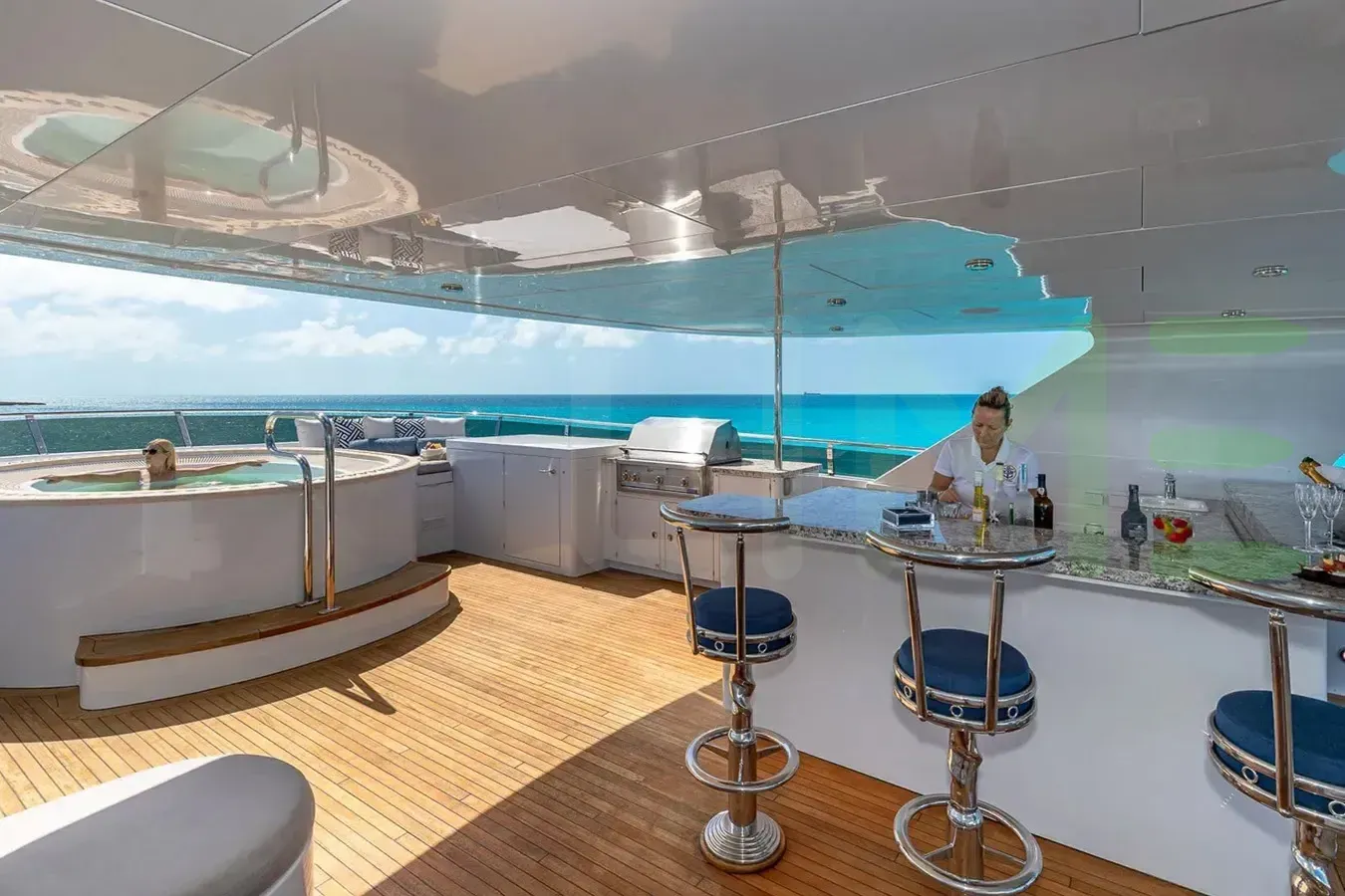 A charter on Amore is comfortable and convenient thanks to the provided amenities, notably a gym with all the latest equipment to maintain your fitness routine. Retreat to the deck jacuzzi and soak up the scenery.