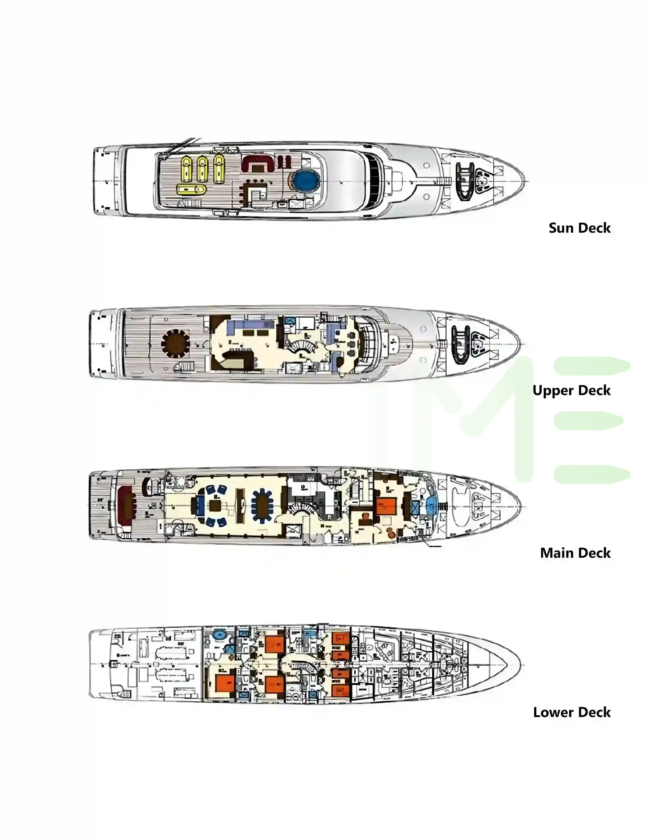 Request plans that include the layout of staterooms, guest areas, and outdoor spaces, as well as crew quarters and work areas.