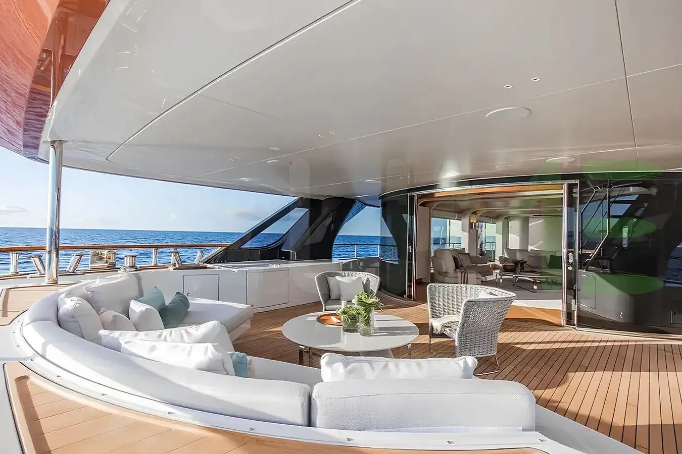With a gross tonnage of 298, the ANGEL yacht for charter provides ample interior space for enjoyment. ANGEL offers accommodations for up to 10 guests . She can also carry up to 7 crew onboard, including the Captain, to ensure a relaxed luxury yacht charter experience. The interior design by Lazzarini & Pickering exudes a sense of luxury, seamlessly blending comfort with style.