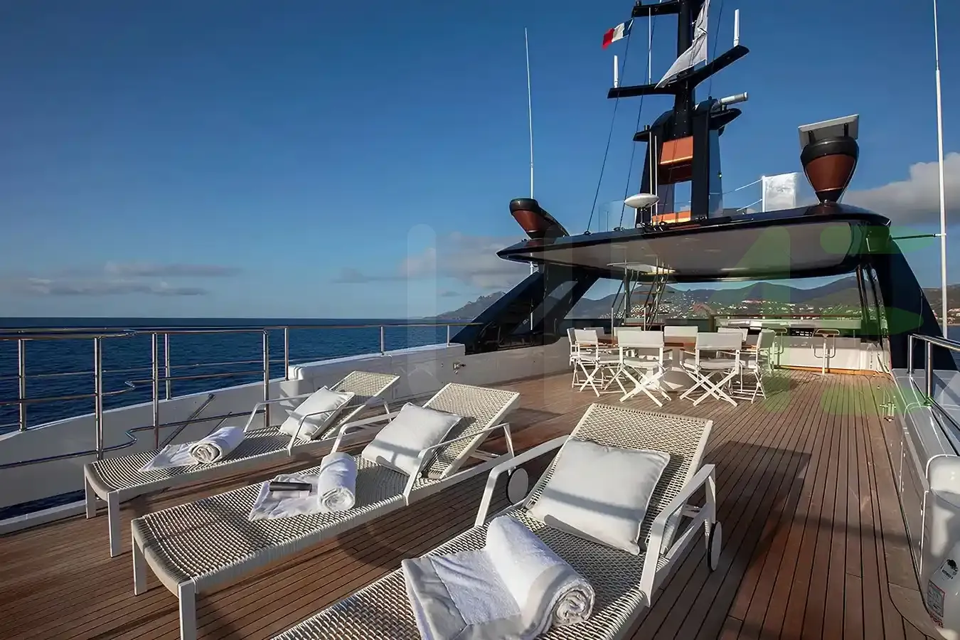 Built by Benetti in Italy, this stunning yacht boasts a length of 120' 9" (36.8m), a beam of 25' 7" (7.8m), and a draft of 6' 5" (1.96m).