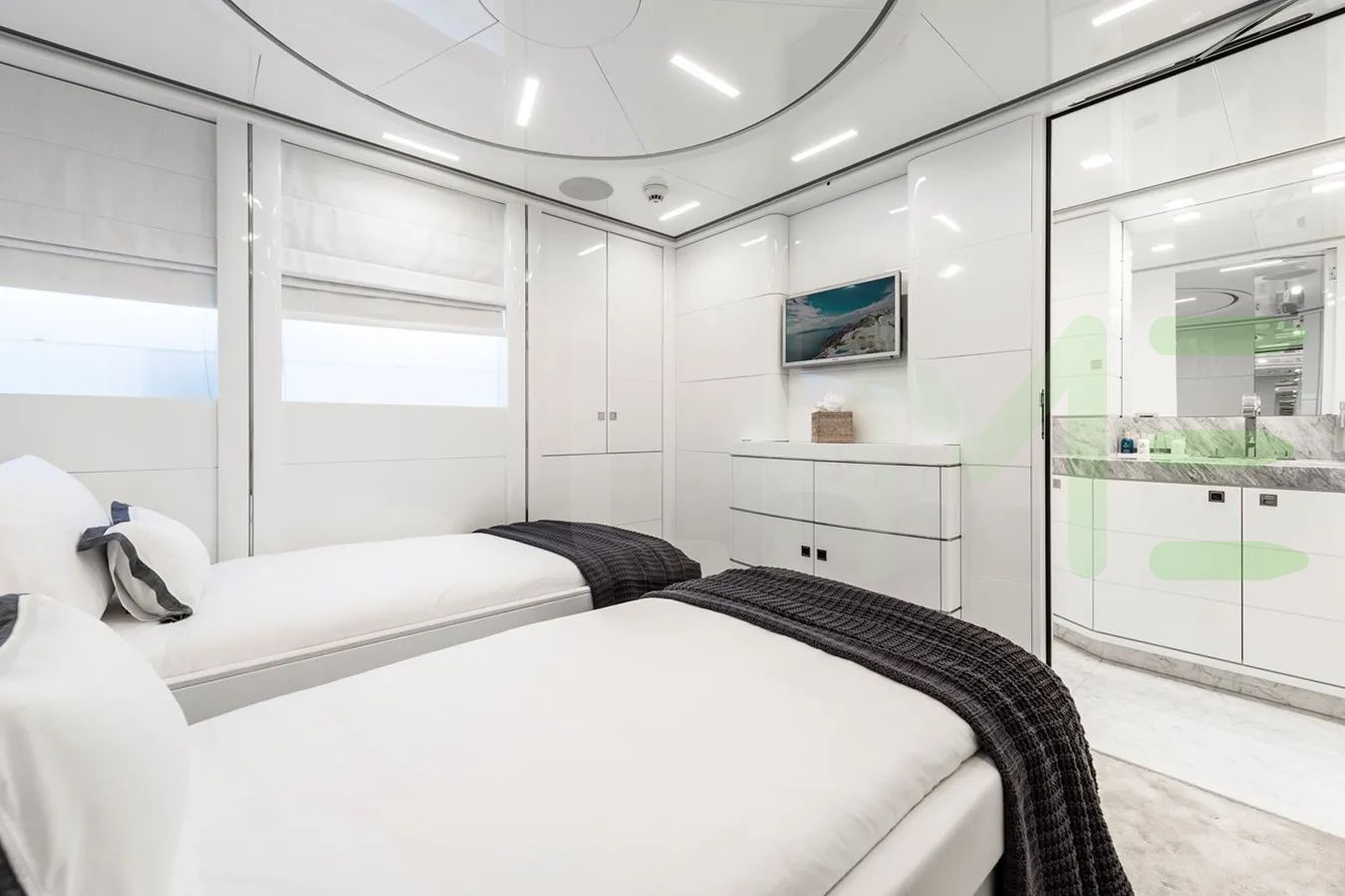 With a gross tonnage of 245, the ANGKALIA yacht for charter provides ample interior space for enjoyment. ANGKALIA offers accommodations for up to 12 guests in 5 lavishly appointed staterooms. She can also carry up to 6 crew onboard, including the Captain, to ensure a relaxed luxury yacht charter experience. The interior design by Heesen Yachts, Omega Architects, Luxury Projects exudes a sense of luxury, seamlessly blending comfort with style.