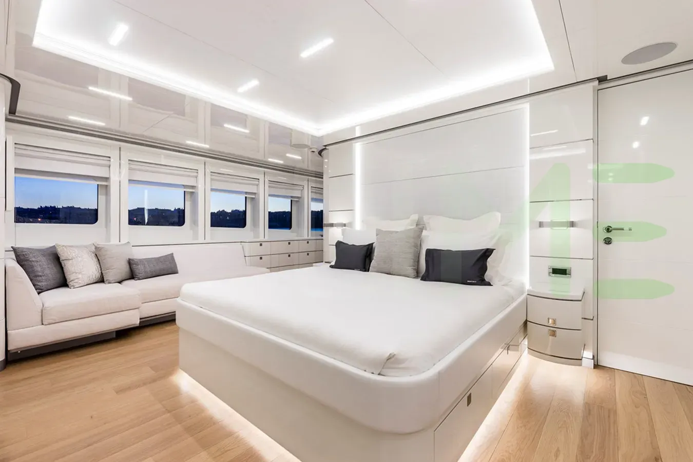 With a gross tonnage of 245, the ANGKALIA yacht for charter provides ample interior space for enjoyment. ANGKALIA offers accommodations for up to 12 guests in 5 lavishly appointed staterooms. She can also carry up to 6 crew onboard, including the Captain, to ensure a relaxed luxury yacht charter experience. The interior design by Heesen Yachts, Omega Architects, Luxury Projects exudes a sense of luxury, seamlessly blending comfort with style.