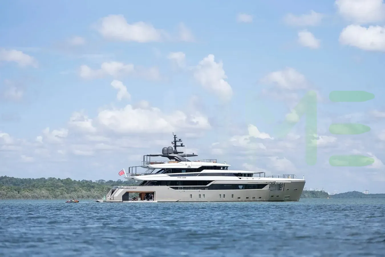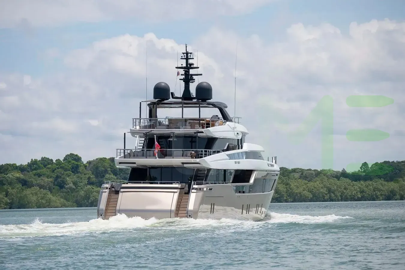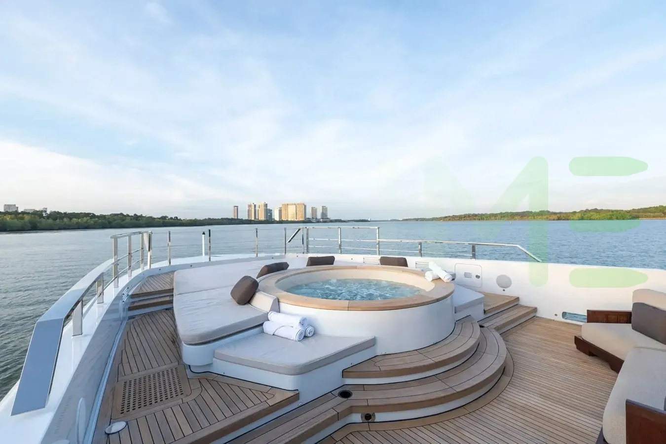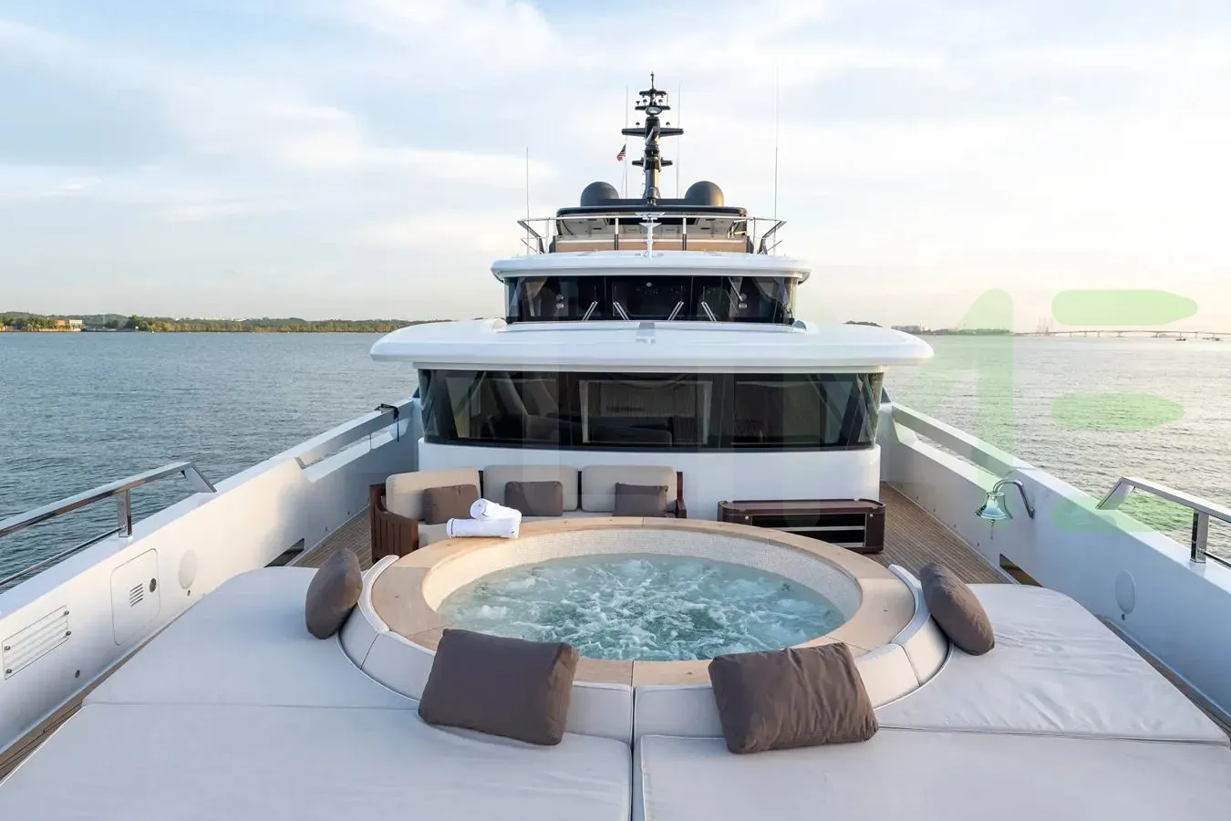 Her features include satellite communications, beach club, deck jacuzzi, WiFi and air conditioning.
