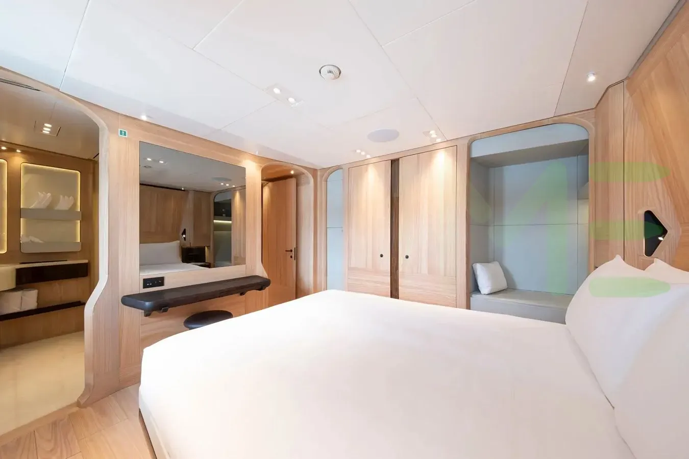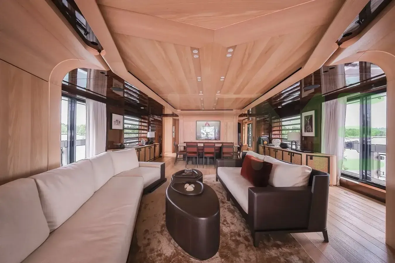 With a gross tonnage of 482, the ANNABELLA yacht for charter provides ample interior space for enjoyment. ANNABELLA offers accommodations for up to 10 guests in 5 lavishly appointed staterooms. She can also carry up to 9 crew onboard, including the Captain, to ensure a relaxed luxury yacht charter experience. The interior design by Liaigre exudes a sense of luxury, seamlessly blending comfort with style.
