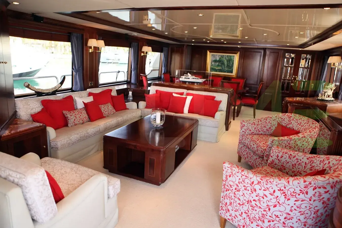 With a gross tonnage of 193, the ANYPA yacht for charter provides ample interior space for enjoyment. ANYPA offers accommodations for up to 8 guests in 4 lavishly appointed staterooms. She can also carry up to 4 crew onboard, including the Captain, to ensure a relaxed luxury yacht charter experience. The interior design by Zuretti Interior Design exudes a sense of luxury, seamlessly blending comfort with style.