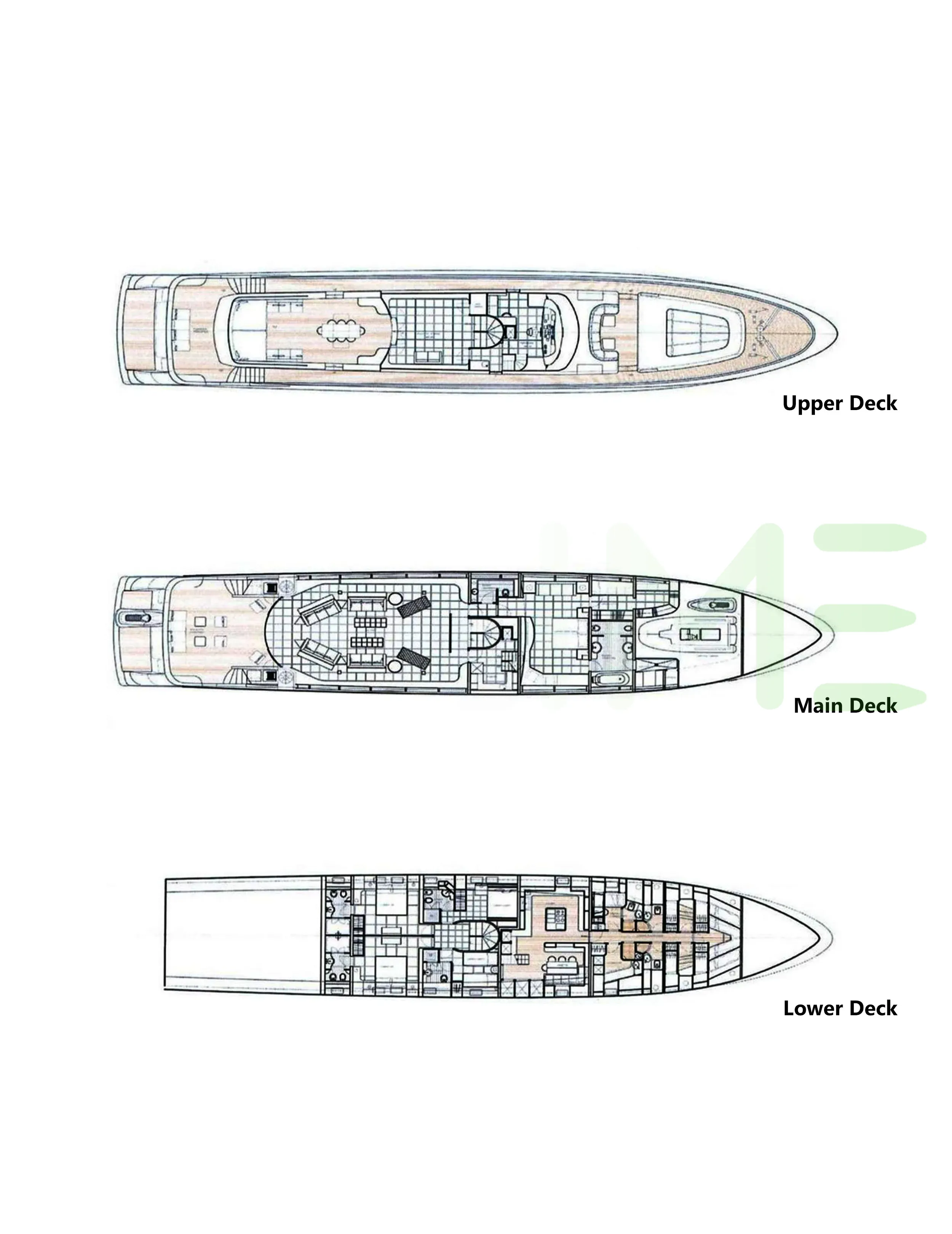 Request plans that include the layout of staterooms, guest areas, and outdoor spaces, as well as crew quarters and work areas.