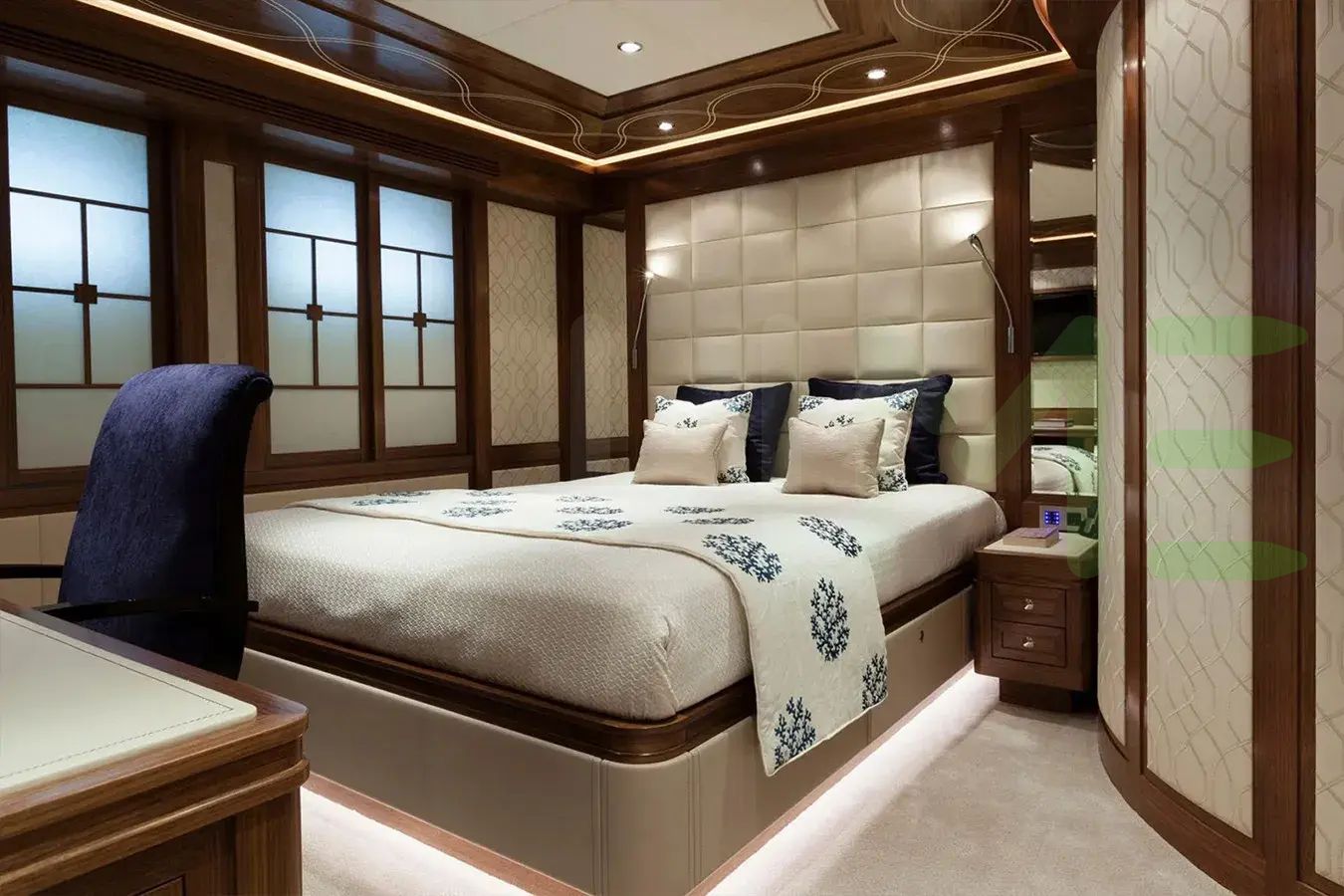 With a gross tonnage of 450, the ARES yacht for charter provides ample interior space for enjoyment. ARES offers accommodations for up to 12 guests in 6 lavishly appointed staterooms. She can also carry up to 10 crew onboard, including the Captain, to ensure a relaxed luxury yacht charter experience. The interior design by Omega Architects exudes a sense of luxury, seamlessly blending comfort with style.