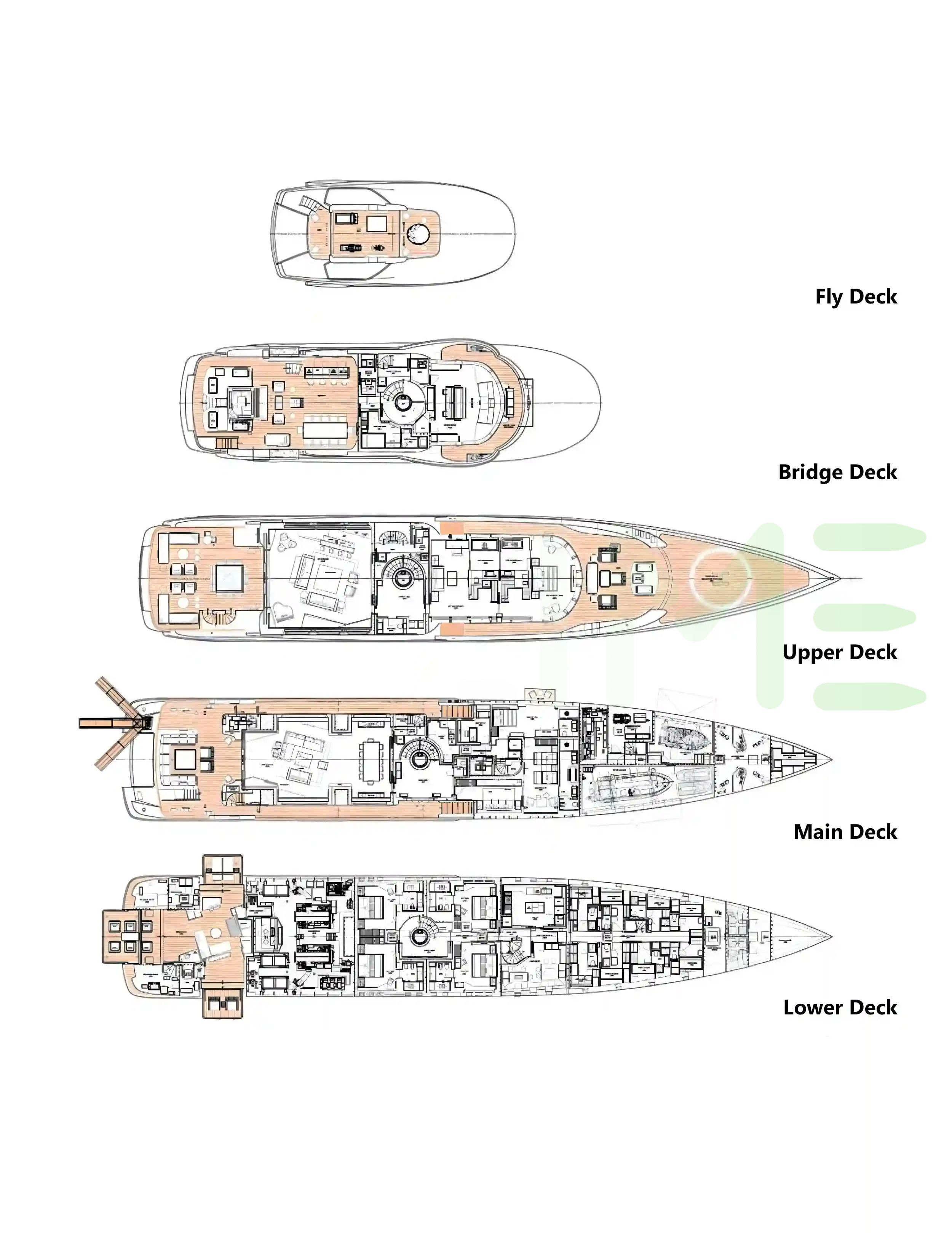 Request plans that include the layout of staterooms, guest areas, and outdoor spaces, as well as crew quarters and work areas.