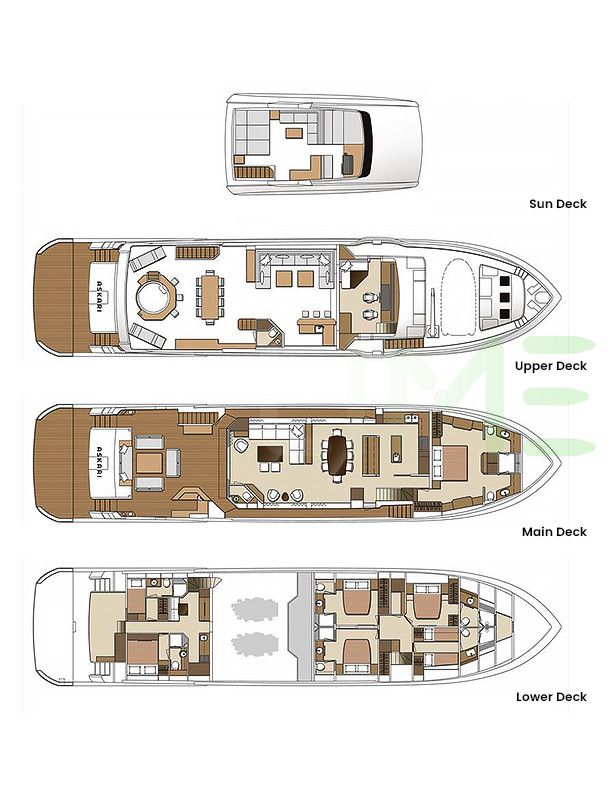 Request plans that include the layout of staterooms, guest areas, and outdoor spaces, as well as crew quarters and work areas.