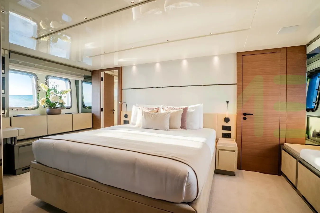 With a gross tonnage of 127, the ASTRIMARE II yacht for charter provides ample interior space for enjoyment. ASTRIMARE II offers accommodations for up to 8 guests . She can also carry up to 3 crew onboard, including the Captain, to ensure a relaxed luxury yacht charter experience. The interior design by Zuccon International Project exudes a sense of luxury, seamlessly blending comfort with style.