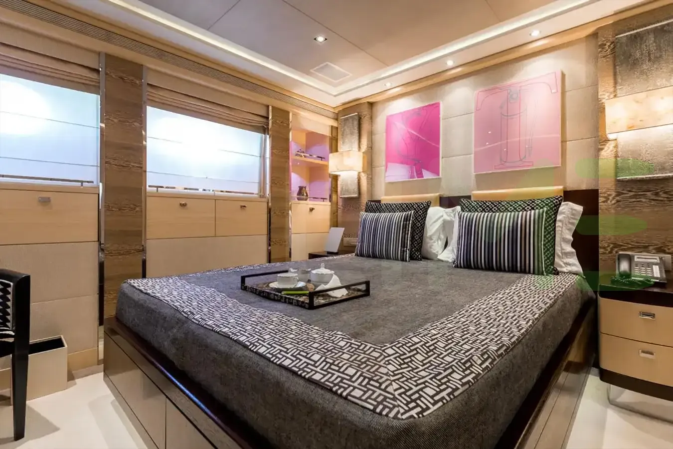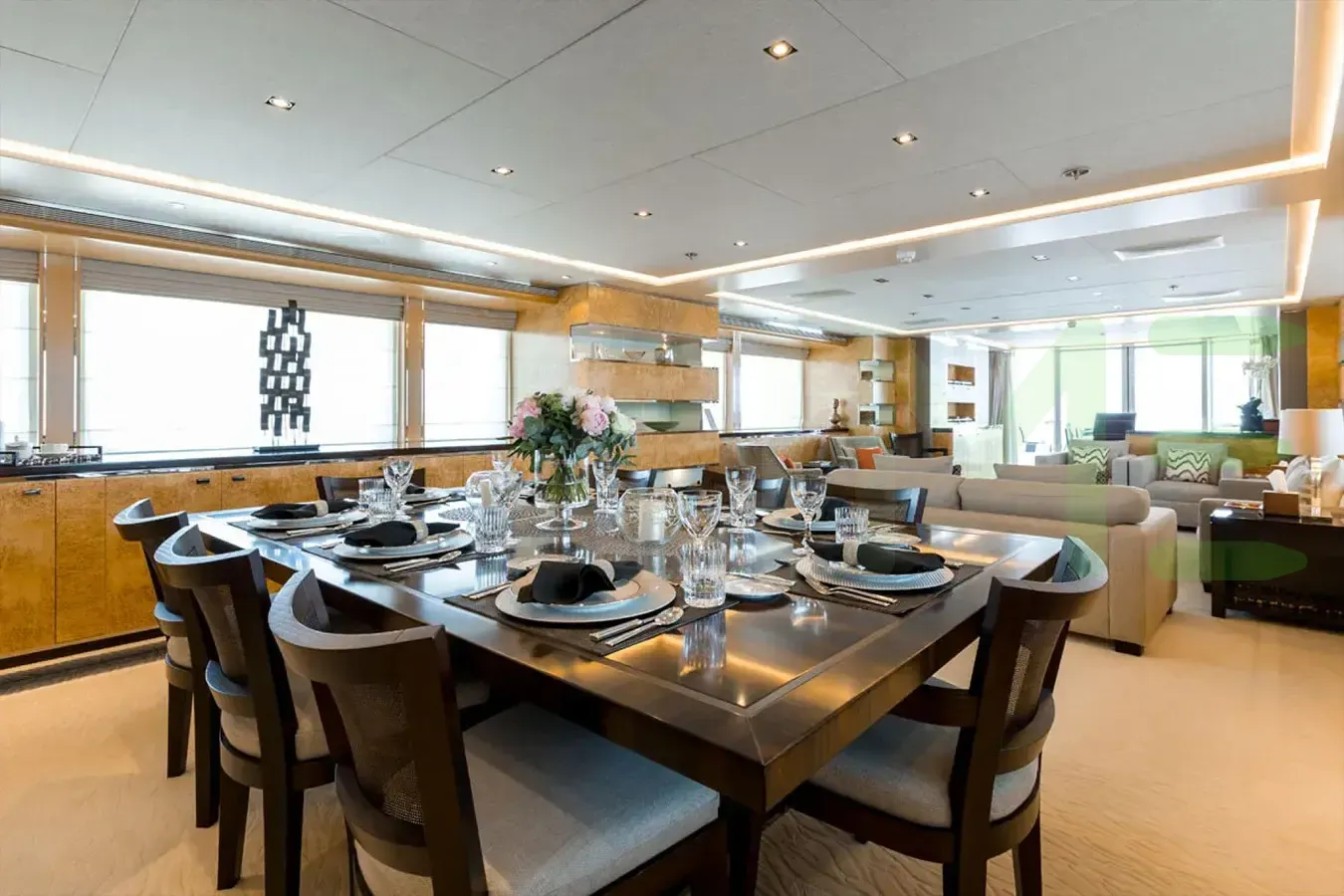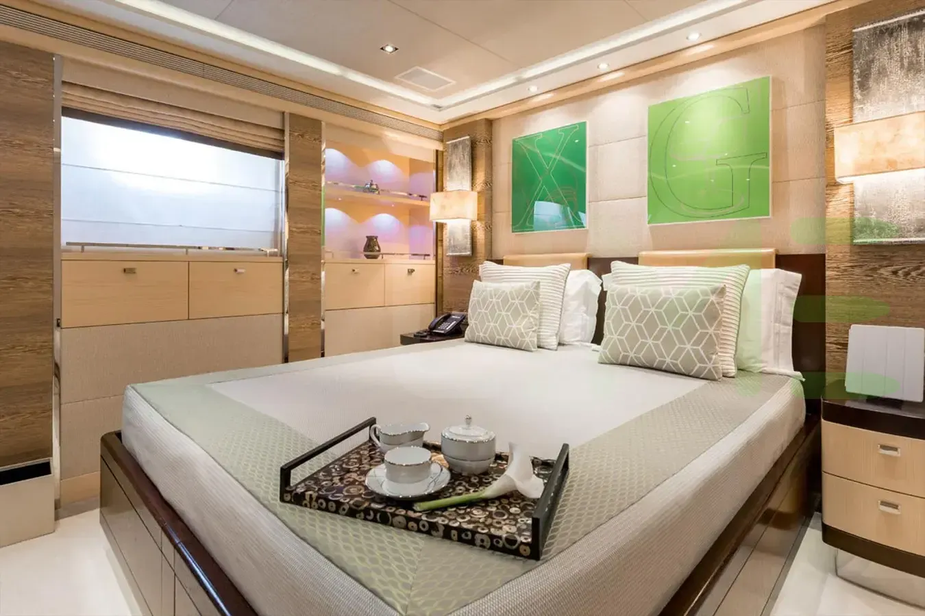With a gross tonnage of 499, the ATINA yacht for charter provides ample interior space for enjoyment. ATINA offers accommodations for up to 12 guests in 5 lavishly appointed staterooms. She can also carry up to 11 crew onboard, including the Captain, to ensure a relaxed luxury yacht charter experience. The interior design by Bannenberg & Rowell Design exudes a sense of luxury, seamlessly blending comfort with style.