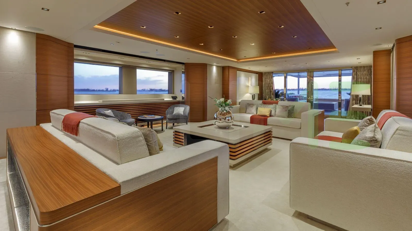 With a gross tonnage of 1,101, the ATOMIC yacht for charter provides ample interior space for enjoyment. ATOMIC offers accommodations for up to 17 guests in 7 lavishly appointed staterooms. She can also carry up to 18 crew onboard, including the Captain, to ensure a relaxed luxury yacht charter experience. The interior design by Darnet Design exudes a sense of luxury, seamlessly blending comfort with style.