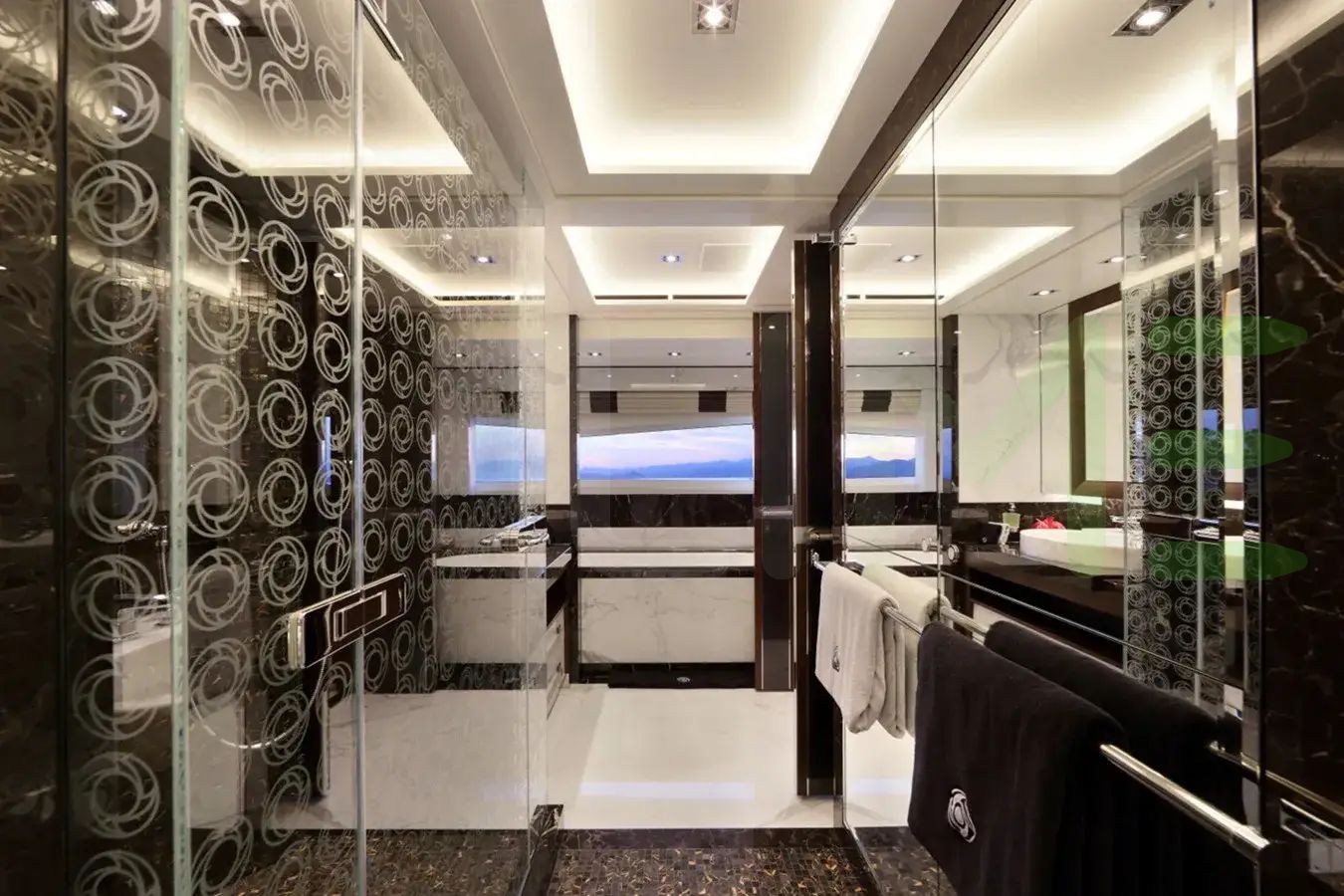 The exterior, designed by Omega Architects, captures your attention with beautiful lines and impeccable craftsmanship. Whether you're lounging on the spacious decks or enjoying water sports in a secluded anchorage, the AURELIA yacht for charter, built of Aluminium, offers a wealth of opportunities for relaxation and adventure.
