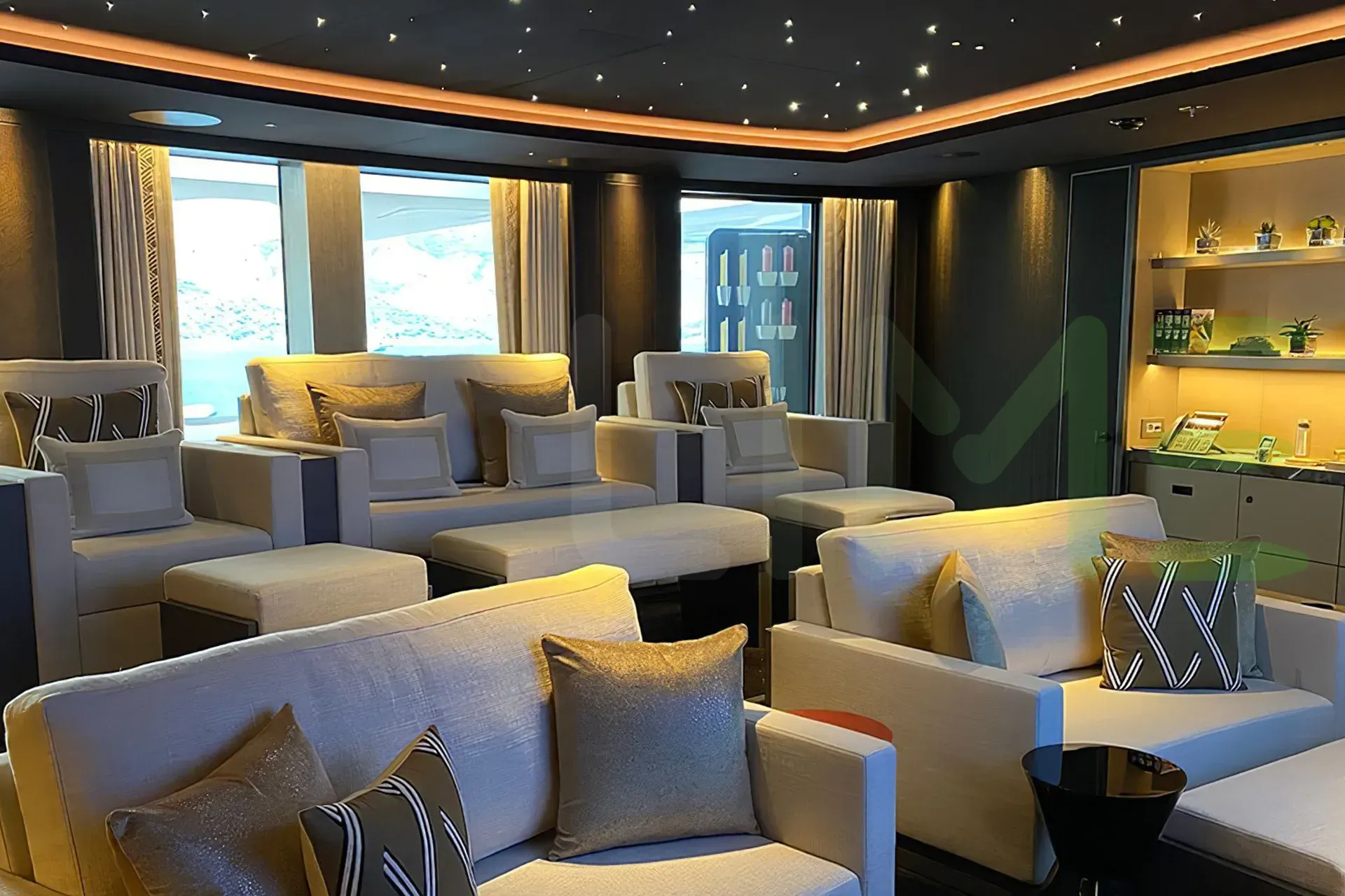 With a gross tonnage of 2,744, the AVANTAGE yacht for charter provides ample interior space for enjoyment. AVANTAGE offers accommodations for up to 14 guests in 7 lavishly appointed staterooms. She can also carry up to 34 crew onboard, including the Captain, to ensure a relaxed luxury yacht charter experience. The interior design by Bannenberg & Rowell Design exudes a sense of luxury, seamlessly blending comfort with style.