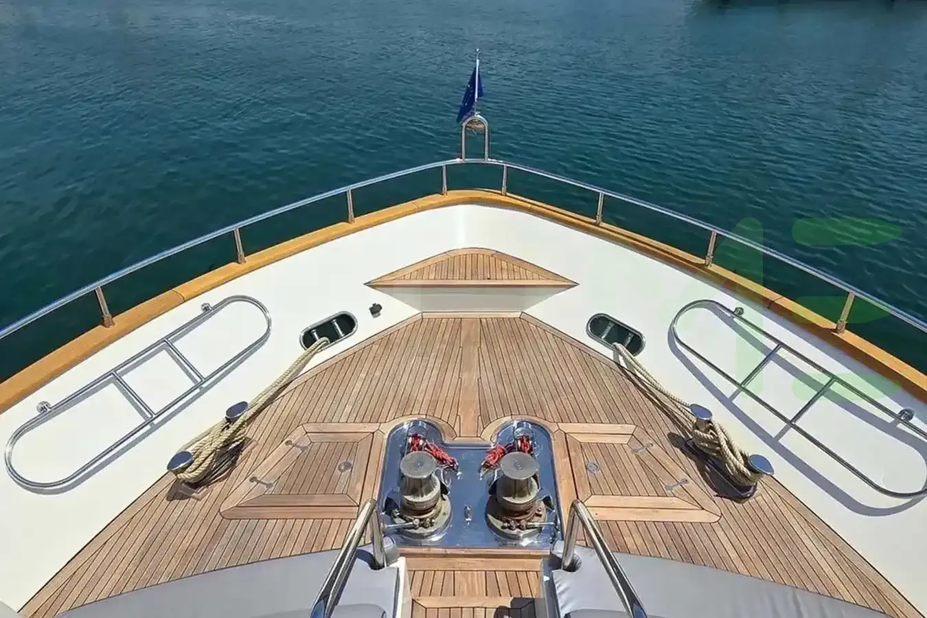The exterior, designed by Falcon Yachts S.r.l., captures your attention with beautiful lines and impeccable craftsmanship. Whether you're lounging on the spacious decks or enjoying water sports in a secluded anchorage, the BALKAN yacht for charter, built of GRP, offers a wealth of opportunities for relaxation and adventure.