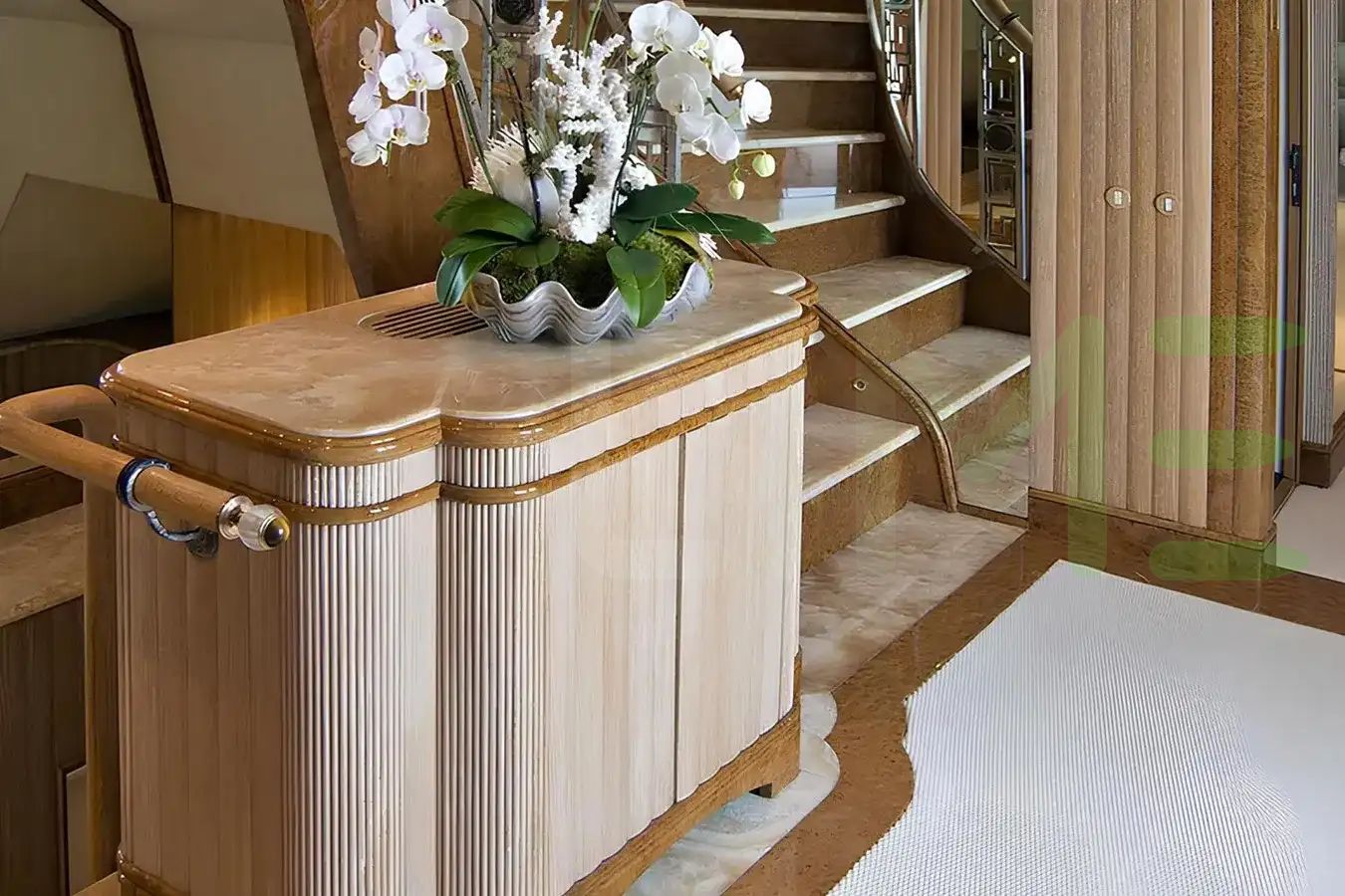 With a gross tonnage of 496, the BARENTS yacht for charter provides ample interior space for enjoyment. BARENTS offers accommodations for up to 12 guests in 6 lavishly appointed staterooms. She can also carry up to 11 crew onboard, including the Captain, to ensure a relaxed luxury yacht charter experience. The interior design by Stefano Natucci exudes a sense of luxury, seamlessly blending comfort with style.