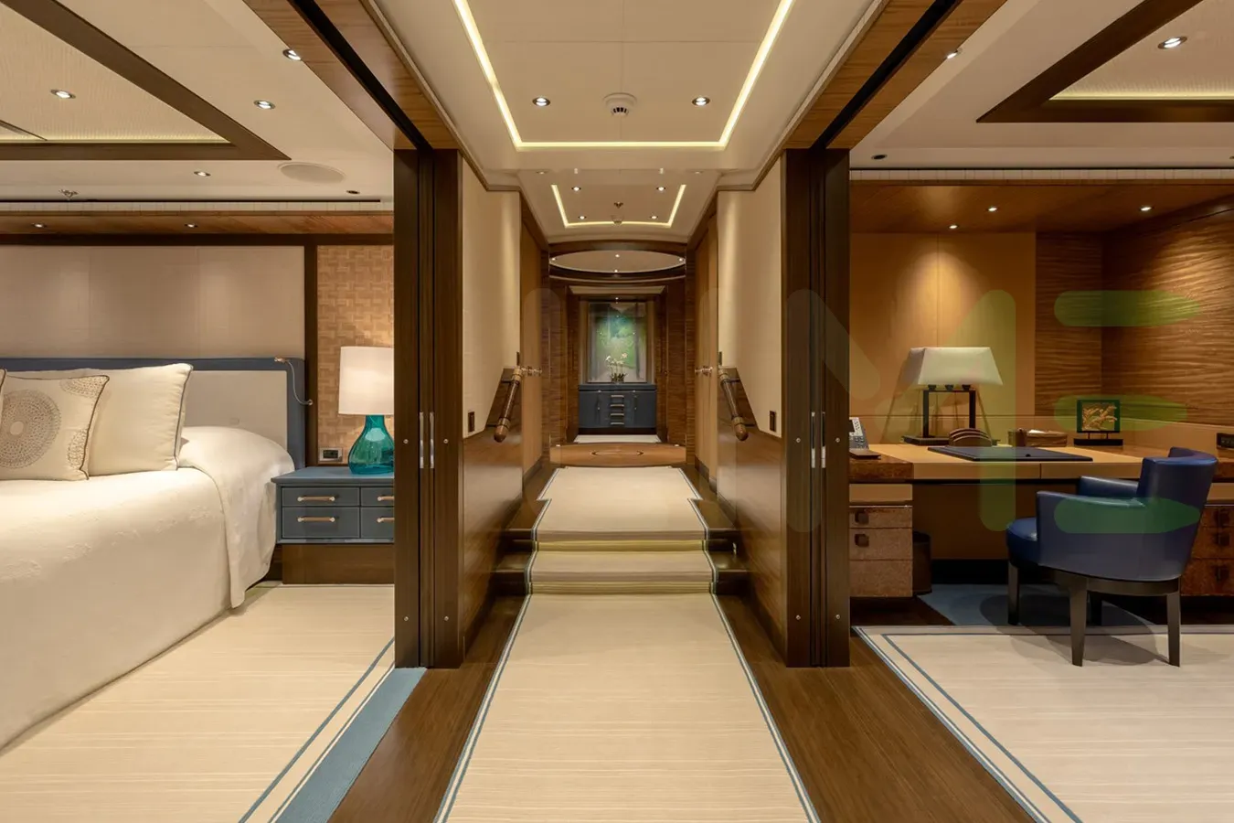 With a gross tonnage of 1,423, the BATON ROUGE yacht for charter provides ample interior space for enjoyment. BATON ROUGE offers accommodations for up to 12 guests in 7 lavishly appointed staterooms. She can also carry up to 18 crew onboard, including the Captain, to ensure a relaxed luxury yacht charter experience. The interior design by RWD exudes a sense of luxury, seamlessly blending comfort with style.