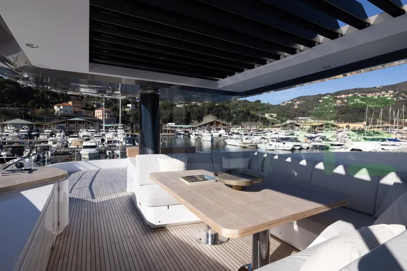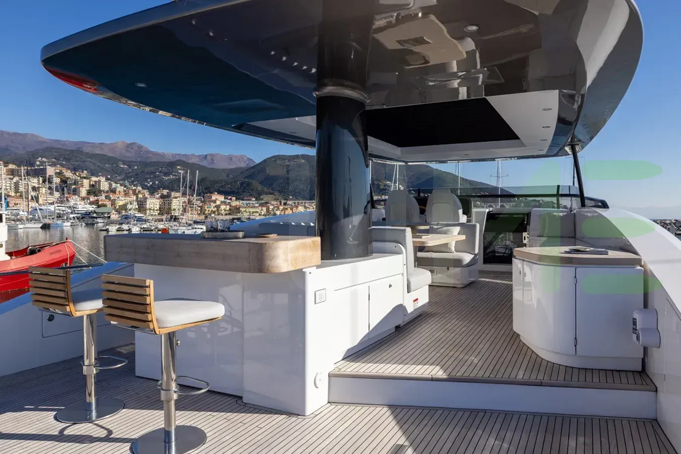 Built by Azimut in Italy, this stunning yacht boasts a length of 82' 8" (25.2m), a beam of 20' 10" (6.35m), and a draft of 6' 3" (1.9m).