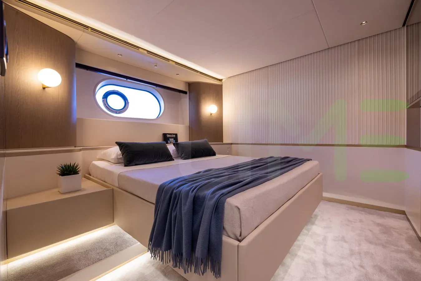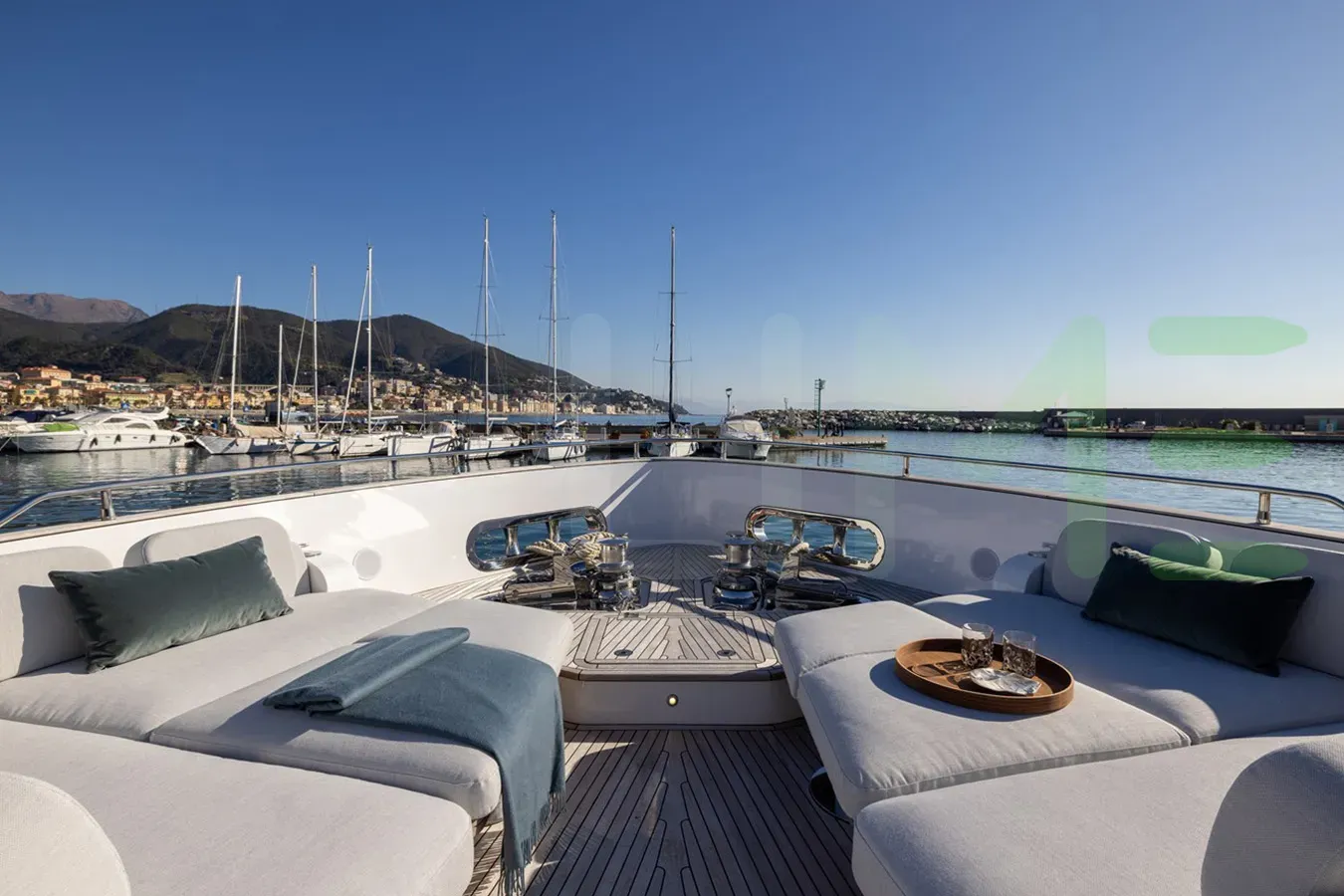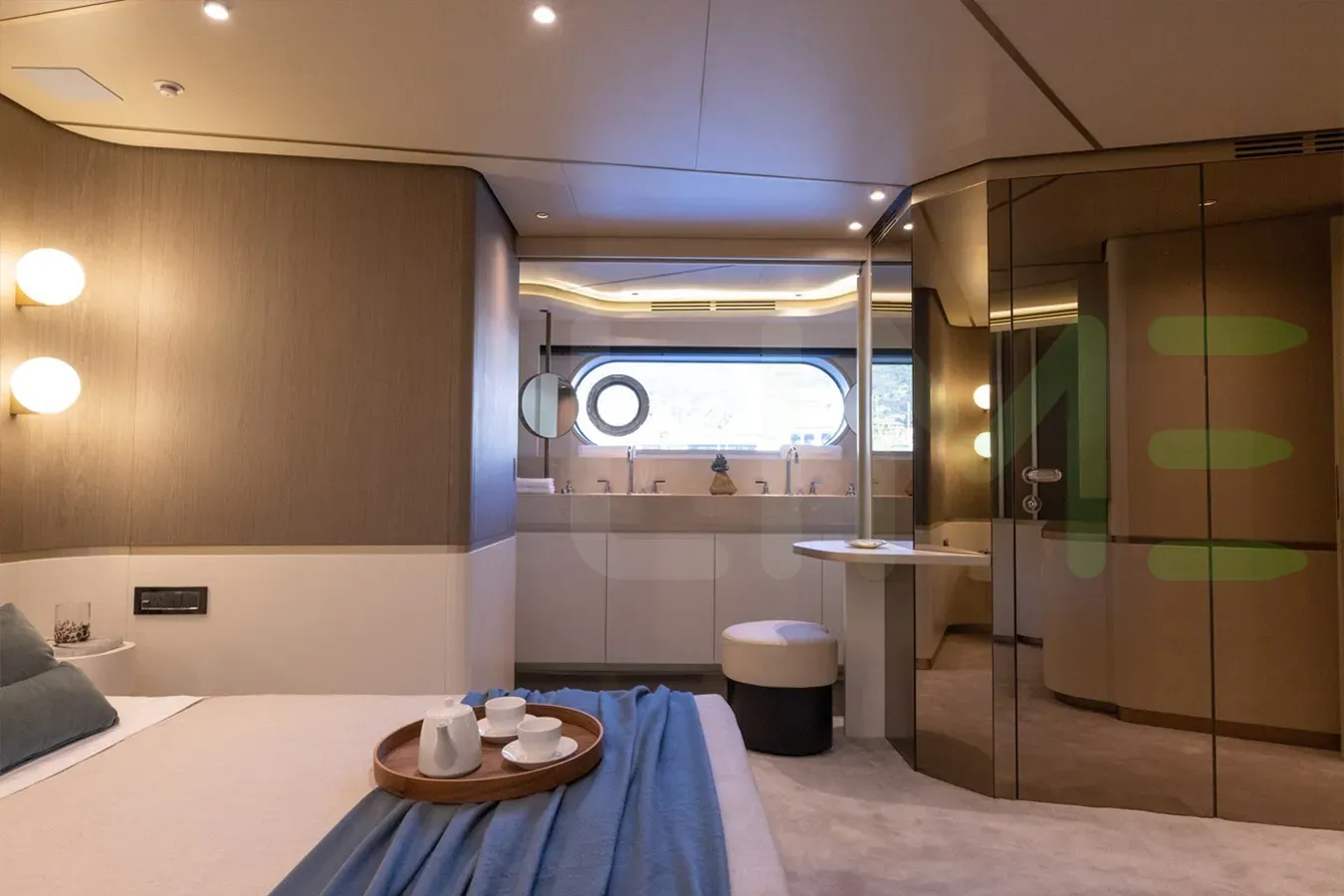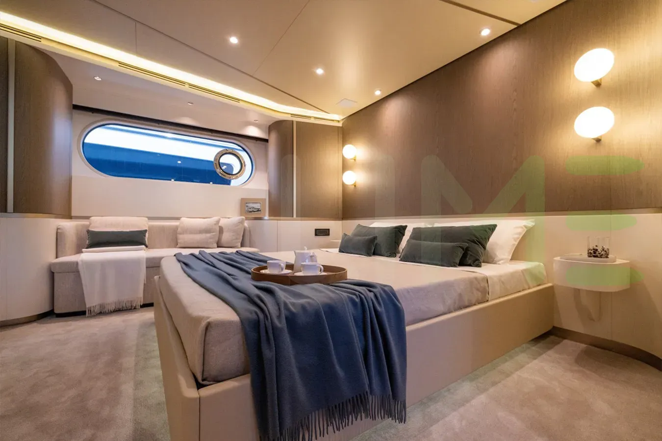 With a gross tonnage of 110, the BAYU yacht for charter provides ample interior space for enjoyment. BAYU offers accommodations for up to 8 guests . She can also carry up to 3 crew onboard, including the Captain, to ensure a relaxed luxury yacht charter experience. The interior design by Azimut Yachts exudes a sense of luxury, seamlessly blending comfort with style.